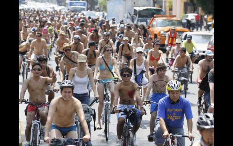Jalisco | Pedalean por las calles de la ciudad Ciclistas tapatíos reclaman más espacio Según cifras oficiales, en la manifestación participaron alrededor de 400 personas; autoridades reportan saldo blanco Por: EL INFORMADOR 12 de junio de 2011 - 03:23 hs Ciclistas circulan en los alrededores de La Minerva. La Ciudad de México también fue escenario de una manifestación similar. E. PACHECO / GUADALAJARA, JALISCO (12/JUN/2011).- Con poca ropa y en algunos casos al desnudo, cientos de ciclistas recorrieron arterias de la ciudad en demanda de ciclovías y en promoción del velocípedo como un medio de transporte que no contamina. Las personas lanzaban una mirada curiosa a los ciclistas a lo largo de su trayecto, que inició en la ex penal de Oblatos, por avenida Javier Mina, y que concluyó en la Rambla Cataluña, no sin antes pasar por la emblemática Glorieta de La Minerva. En las espaldas de los ciclistas se leía: “¿Ahora sí me ves?; “Soy un auto menos” o “Yo no contamino”. En tanto que, mientras pedaleaban, lanzaban consignas como: “Usa bicicleta, cuida tu planeta”, “Bájate del auto, súbete a la bici”. Conforme avanzaba el recorrido algunos de los participantes se despojaron por completo de su ropa y aunque se temía la posible represión de parte de autoridades tapatías, los elementos de seguridad del municipio sólo custodiaron la movilización, no hubo sanción para quienes pedalearon desnudos. Al finalizar el recorrido los asistentes, en su mayoría semidesnudos, levantaron sus bicicletas como muestra de triunfo porque “sí se pudo” realizar el paseo, “en una ciudad tan mocha como Guadalajara”. “Se logró lo que no se esperaba, hay ciudadanos unidos y ésta es la voz del ciclista no sólo la mía. Somos hombres y mujeres necesitados de vías para un transporte más humano, más amable”, subrayó Miguel sin apellidos, convocante al recorrido ciclista. Agregó que seguirán exigiendo ciclovías y esperan que su demanda tenga eco entre las autoridades responsables de construir estos caminos. Además, anunció que para el próximo año se repetirá el ejercicio de ayer, “Guadalajara forma parte del World Naked Bike Ride, ya se une a un movimiento internacional”. El recorrido terminó con saldo blanco, no se reportó ningún tipo de incidente, “estuvo sin novedad”, reportó Salvador Salazar de la Policía de Guadalajara. Autoridades de seguridad mencionaron que no se sancionó a los pocos ciclistas desnudos para evitar alguna confrontación. El trayecto inició a las 11:00 horas en la avenida Javier Mina a la altura de la ex penal de Oblatos (avanzando por dos carriles), siguió por Juárez, un tramo de Alcalde para continuar por Juárez-Vallarta hacia La Minerva, luego tomar Hidalgo para concluir en la Plaza Rambla Cataluña poco a antes de las 13:00 horas. La manifestación PARTICIPANTES: Más de mil 500 ciclistas, según organizadores. Las autoridades tapatías calculan que fueron alrededor de 400. MIEMBROS: La participación en el World Naked Bike Ride es voluntaria. OBJETIVOS: Cuestionar la excesiva dependencia de combustibles fósiles. Exigir respeto al ciclista y al peatón. Promover el uso de transportes de locomoción humana. Enaltecer la fuerza e individualidad corporal. Temas Manifestaciones en Jalisco Municipios Movilidad urbana Lee También Zonas de Jalisco que esperan lluvia en las próximas horas Más de 400 viviendas en Vallarta tienen pérdida en menaje Chapala rebasa lo esperado para este año por fuertes lluvias Marchas CDMX: HOY, 14 de octubre, estas son las afectaciones viales Recibe las últimas noticias en tu e-mail Todo lo que necesitas saber para comenzar tu día Registrarse implica aceptar los Términos y Condiciones