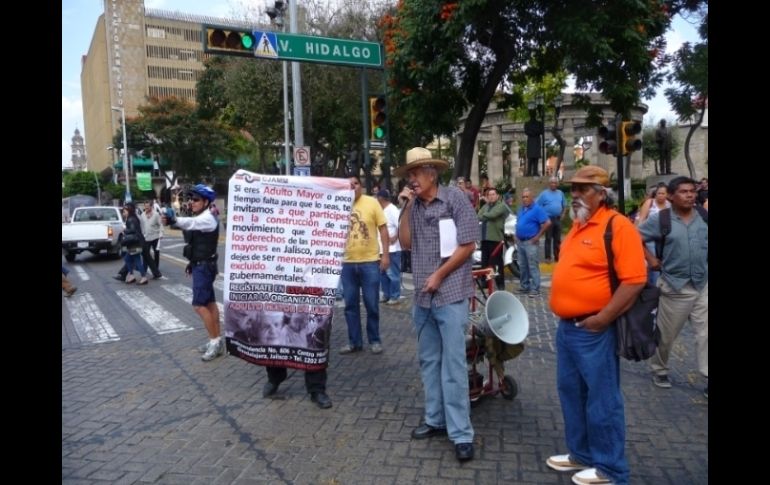 Jalisco | Un grupo de 30 personas exigen que Emilio González les cumpla con lo prometido Cierran el Centro de nuevo; adultos mayores se manifiestan Exigen que el gobernador Emilio González cumpla con apoyos prometidos Por: EL INFORMADOR 5 de noviembre de 2011 - 13:07 hs Con altavoces hacen escuchar sus demandas en medio del caos vehicular. / GUADALAJARA, JALISCO (05/NOV/2011).- El centro por tercera vez en lo que va de esta semana, fue bloqueado por una manifestación; este sábado personas de la tercera edad bloquearon las avenidas Juárez, 16 de Septiembre e Hidalgo Alrededor de las 13:00 horas, y por un lapso menor a dos horas, un grupo de alrededor de 30 personas exigieron con pancartas y consignas que el gobernador del Estado les cumpla con lo acordado respecto a la entrega de apoyos económicos. Ellos refieren que Emilio González Márquez se comprometió a brindarles apoyos económicos a los adultos mayores de Jalisco. Sus principales peticiones son: Aplicación de un programa de pensión alimenticia universal, desempolvar la iniciativa popular de ley que otorga la pensión a los adultos mayores de 70 años y un apoyo adicional a los ex braceros del estado. Durante el bloqueo, la circulación fluyó con normalidad a través del túnel vehicular de avenida Hidalgo. Minutos después de las 15:00 horas la circulación de automotores por el primer cuadro de la ciudad es complicada Para saber Durante los días previos, el grupo de comerciantes denominado “Artesanos Urbanos” cerró el flujo vehicular en el cruce de las vialidades 16 de Septiembre e Hidalgo, por dos jornadas consecutivas.Los comerciantes se manifestaron para exigirle al Ayuntamiento de Guadalajara les permita vender sus productos al interior del Centro Histórico, específicamente en el “Callejón del Diablo”. Temas Manifestaciones en Jalisco Vialidad Centro Histórico Av. 16 de Septiembre Lee También Charros de Jalisco arranca temporada de LMP con derrota ante los Águilas Se incendian dos vehículos en Teocaltiche; investigan los hechos Dónde ver EN VIVO Charros de Jalisco vs Águilas de Mexicali por la serie inaugural de la LMP Ratifican a Consuelo González como magistrada del Supremo Tribunal de Justicia de Jalisco Recibe las últimas noticias en tu e-mail Todo lo que necesitas saber para comenzar tu día Registrarse implica aceptar los Términos y Condiciones