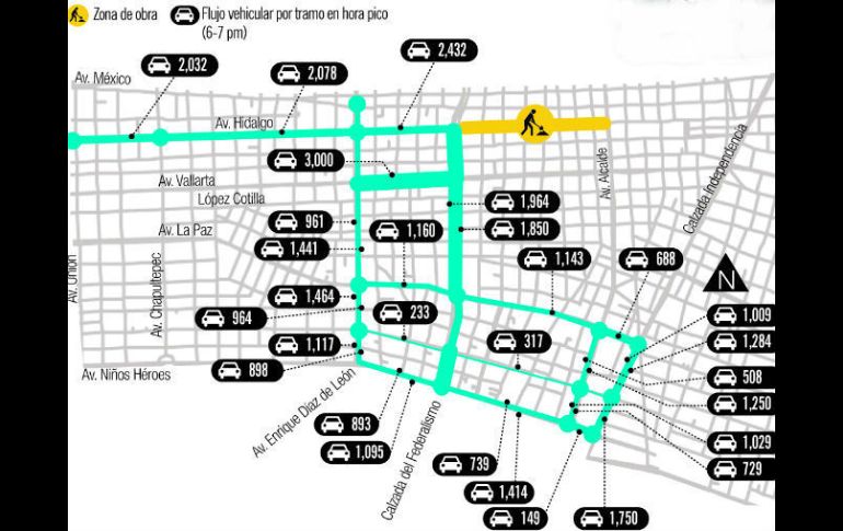 Jalisco | Desde anoche se cerró la circulación en la avenida por la ampliación del túnel Cierre de Hidalgo afectará el tránsito de 37 mil vehículos La medida impactará en el flujo de vialidades paralelas como López Cotilla, La Paz y Niños Héroes Por: EL INFORMADOR 10 de octubre de 2015 - 02:53 hs El cierre de Hidalgo tiene un polígono de influencia que abarca casi la totalidad de los perímetros A y B del Centro Histórico. EL INFORMADOR / GUADALAJARA, JALISCO (10/OCT/2015).- Desde la noche de este viernes fue cerrada completamente a la circulación de Avenida Hidalgo para la ampliación del túnel vehicular que pasa por debajo de Avenida Alcalde. El cierre del tramo de Contreras Medellín hasta Santa Mónica afectará el paso de más de 37 mil vehículos por hora. De acuerdo a un estudio realizado por el Instituto de Movilidad y Transporte de Jalisco (IMTJ), el cierre de Hidalgo tiene un polígono de influencia que abarca prácticamente la totalidad de los perímetros A y B del Centro Histórico. Impactará especialmente la circulación de ocho vías por las que suelen circular los vehículos que se dirigen al primer cuadro tapatío o que sólo transitan por la zona. Se trata de Avenida Vallarta, Enrique Díaz de León, Federalismo, La Paz, Niños Héroes, 16 de Septiembre, la Calzada Independencia y Mexicaltzingo. Junto con Hidalgo, por estas ocho vías circulan cerca de 37 mil 980 vehículos durante la hora pico, sin contar importantes calles como López Cotilla, Libertad, Pedro Moreno y Juan Manuel, entre otras. Además, se modificará el derrotero de las rutas 400 y 500. La obra, pospuesta por casi cuatro meses, inició con cierres parciales a finales de agosto para realizar trabajos preliminares como ocultar la red de alumbrado público. Es el quinto cierre vial en el Centro tapatío además de los provocados por la Línea 3, la repavimentación de Pedro Moreno y la construcción del Mercado Corona. Toda la semana, personal de la Semov ha repartido volantes a usuarios del transporte público y particulares. Además, durante la obra contará con personal de forma permanente en la zona y se llevará a cabo el ‘’operativo barredora’’ en las vías alternas para evitar mayores complicaciones a la circulación. MOVILIDADVías alternas Como rutas alternas, la Secretaría de Movilidad (Semov) propone tomar Jesús García para llegar al Centro Médico, 8 de Julio para arribar a la Clínica 46, Federalismo para dirigirse a la Zona Industrial y La Normal, así como La Paz y Los Ángeles para llegar al Centro Universitario de Ciencias Exactas e Ingenierias (CUCEI) por Marcelino García Barragán. Para llegar al Centro recomiendan las calles López Cotilla, Libertad y Juan Manuel. Ve las rutas alternas:(Para dispositivos móviles, pulsa aquí) Temas Vialidad Obras públicas en Guadalajara Calles y vialidades de Guadalajara Lee También 'Estuvimos más de 24 horas sin comida ni agua', padecen conductores bloqueos en carretera Guadalajara-Morelia Cine al aire libre en Guadalajara: Cartelera del 15 al 19 de octubre EN VIVO: Maiceros bloquean carretera Guadalajara-Morelia Portada: Calaverandia 2025, parqué único en el mundo Recibe las últimas noticias en tu e-mail Todo lo que necesitas saber para comenzar tu día Registrarse implica aceptar los Términos y Condiciones
