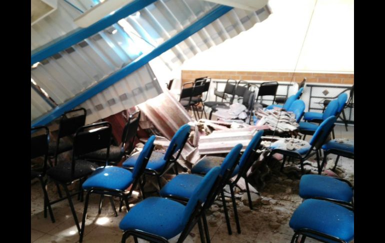 GUADALAJARA, JALISCO (26/SEP/2016).- El techo de un aula de usos múltiples de la escuela primaria Salvador Varela ubicada en la colonia El Colli, en Zapopan, colapsó mientras se realizaban trabajos de mantenimiento lesionando a un trabajador de la escuela. El hecho sucedió alrededor de las 13:30 horas mientras los alumnos estaban en clases, por lo que Protección Civil acudió al plantel educativo para acordonar el área y elaborar un dictamen de daños que estará listo este martes. Dentro del aula de usos múltiples se encontraba mobiliario, equipo de fotocopiado y algunos libros. El área estaba desocupada por lo que ningún alumno resultó lesionado. El albañil se encontraba en el techo trabajando en labores de mantenimiento cuando el techo colapsó a sus pies, debido a problemas de humedad que el lugar presentaba desde años atrás; el afectado resultó con escoriaciones menores. La escuela es propiedad del municipio de Zapopan, por lo que se espera que Obras Públicas del municipio junto con la SEJ, se encarguen de las reparaciones del aula. El salón se encuentra en la entrada de la institución por lo que Protección Civil y Bomberos de Zapopan acordonaron el lugar. Personal de la institución educativa evitó que los menores ingresaran al sitio del colapso, Las autoridades del plantel se negaron a dar declaraciones. Maru Alcantar, madre de familia, dijo que desconocía el estado del aula ni les habían informado sobre el hecho ocurrido. La escuela no suspendió clases. EL INFORMADOR / NALLELY MEDINA