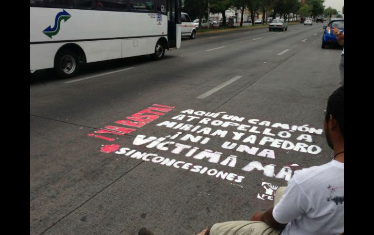 Jalisco | La FEU coloca séptima ''Marca para no olvidar'' donde una señora murió arrollada Colocan una marca más para no olvidar a víctimas del transporte La FEU coloca la séptima ''Marca para no olvidar'' en el lugar donde una señora perdió la vida, tras ser arrollada por una unidad del transporte público Por: EL INFORMADOR 15 de marzo de 2013 - 16:31 hs Ayer, también en Ávila Camacho pero al cruce con Agustín Melgar, se colocó otra marca por el caso de dos estudiantes de la UdeG. ESPECIAL / GUADALAJARA, JALISCO (15/MAR/2013).- "Ante su desmemoria, nuestro recuerdo" se plasmó en el lugar del percance en el que perdió la vida la señora Graciela Martínez de 54 años de edad, tras ser arrollada el 17 de febrero pasado por una unidad del transporte público, en avenida Ávila Camacho en las cercanías de Enrique Díaz de León. Este viernes la Federación de Estudiantes Universitarios (FEU) colocó la séptima "Marca para no olvidar", en avenida Ávila Camacho cerca de Enrique Díaz de León; aunque en lo que va de este 2013 son 15 personas las que han perdido la vida bajo las ruedas de un camión, de acuerdo a un conteo de este medio de comunicación. Ayer, también en Ávila Camacho pero al cruce con Agustín Melgar, se colocó otra marca por el caso de dos estudiantes de la Universidad de Guadalajara (UdeG) que resultaron lesionados en un accidente que involucró a una unidad de la ruta 142 A. Los jóvenes Pedro Zepeda Rodríguez y Miriam Vacas han tenido dificultades para que FORSSA les cubra la atención médica. El muchacho explicó que hubo un trato con personal de FORSSA, se firmaría el desistimiento a fin de que se cubrieran los gastos médicos. "Pero ayer (el miércoles) me dice: te voy a llevar los primeros 65 mil pesos de la operación de Miriam y me vas a firmar el perdón legal porque es un trámite. Los 65 mil pesos no son ni la tercera parte de todos los gastos, se va a llevar más, por ejemplo, la rehabilitación, el pago de la matrícula de Miriam porque es extranjera son muchísimos gastos de los que se quiere evadir él", señaló. En su caso, la clínica donde lo intervendrían no le generó confianza porque sin estudios con "puro tocar, nada profesional" pretendían realizarle una cirugía. El presidente de la FEU, Marco Antonio Núñez Becerra, reprobó que los transportistas estén regateando el pago para la atención Médica de Pedro y Miriam, lo que probablemente sucede en otros casos de personas que sufren lesiones tras un accidente vinculado al transporte público. "Pedro caminaba totalmente bien, Miriam caminaba bien y hoy tiene una estructura de metal que le rodea la cintura. Yo no sé si a los líderes camioneros les gustaría que sus hijos trajeran esa estructura, yo no sé si exigirían el pago completo y estos señores están regateando". Pidió a la autoridad que medie para que se cubran los gastos médicos que sean necesarios. Enmarcado en los esfuerzos por concientizar a las autoridades y al sector transportista de la necesidad de replantear el tema de movilidad en el Estado, la FEU ha iniciado una campaña denominada "Marcas para no olvidar" en la que se plasma un mensaje conmemorativo en el lugar donde han fallecido personas en percances vinculados al transporte público. EL INFORMADOR / LETICIA FONSECA Temas Transporte Público Vialidad FEU Recibe las últimas noticias en tu e-mail Todo lo que necesitas saber para comenzar tu día Registrarse implica aceptar los Términos y Condiciones