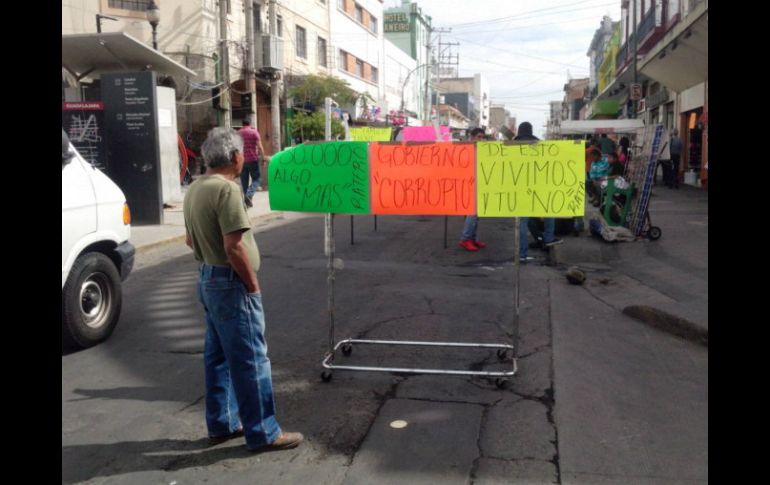 Jalisco | Denuncian que autoridades conceden permisos ''preferenciales'' Comerciantes ambulantes se manifiestan en Obregón Exigen igualdad en trato al Ayuntamiento; denuncian que autoridades conceden permisos ''preferenciales'' Por: EL INFORMADOR 19 de noviembre de 2014 - 12:56 hs La manifestación, advierten comerciantes, será pacífica ''por el momento'' y permanecerá en el sitio. EL INFORMADOR / I. De Loza GUADALAJARA, JALISCO (19/NOV/2014).- Que no hay oposición en el núcleo de comerciantes ambulantes que usualmente se instalan sobre la calle de Obregón, para que el Ayuntamiento haga valer su reglamento y retire los establecimientos de zonas en las que no está permitido. Pero aclaran que si se concede un permiso, entonces el municipio debe atender a todos por igual. Y eso está ocurriendo. Esta mañana, una manifestación compuesta por 55 comerciantes ambulantes que no han podido instalarse en esa zona comercial ocupó la calle de Obregón para exigirle al municipio que explique por qué sí concede permisos a unos cuantos, y deja sin ingresos a otros tantos. Los integrantes de la protesta colocaron "diablitos" y la estructura de sus puestos a media calle, para en ellos instalar cartulinas con escritos en contra de la autoridad municipal, que "no los deja trabajar". Por otro lado, se aprecia que hay varios puestos instalados en puntos diversos. Sus propietarios aseguran contar con permisividad del Ayuntamiento para ofertar su mercancía en la vía pública. "Sí tienen", dice Raúl Jaramillo, miembro de la asociación Manuel J. Clouthier, una de las voces que espera a representantes de la Secretaría General de Guadalajara para que les aclare por qué hay excepciones a la regla. Expone que si en la zona no se permite el ambulantaje, entonces deben recibir explicaciones sobre por qué hay algunos puestos con permiso oficial. Los manifestantes decidieron quedarse en la calle Obregón, y cerrar el paso de vehículos desde la Calzada Independencia hasta la calle Cabañas. La ya complicada circulación sobre la Calzada sufre afectaciones adicionales en su sentido Sur-Norte, por los vehículos que tratan de dar vuelta en esa calle. Por eso, en el cruce de referencia ya hay vehículos de la Secretaría de Movilidad. La manifestación, advierte Raúl Jaramillo, será pacífica "por el momento" y permanecerá en el sitio. Pero advierte que la insistencia seguirá y podrían cambiar de parecer sobre la ubicación de la protesta si no hay respuesta de las autoridades. EL INFORMADOR / ISAACK DE LOZA Temas Manifestaciones en Jalisco Ayuntamiento de Guadalajara Municipios Comercio ambulante Lee También DIF Jalisco impulsa campaña de adopciones de niñas, niños y adolescentes SMN advierte: Tormenta Raymond dejará lluvias intensas y fuertes vientos en 4 estados Estos son todos los cambios que tendrá el transporte público por el paso de la Romería ¿LLUVIA en GDL por la noche?, pronóstico del clima para hoy, 10 de octubre Recibe las últimas noticias en tu e-mail Todo lo que necesitas saber para comenzar tu día Registrarse implica aceptar los Términos y Condiciones