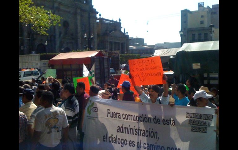 Jalisco | Piden al Ayuntamiento mejores servicios Comerciantes del mercado Felipe Ángeles protestan en el Centro Histórico Piden al Ayuntamiento mejores servicios Por: EL INFORMADOR 22 de noviembre de 2010 - 10:52 hs Los comerciantes argumentaron que se retirarán hasta que sean escuchados. F. URENDA / GUADALAJARA, JALISCO (22/NOV/2010).- Comerciantes del mercado Felipe Ángeles salieron esta mañana a manifestarse frente al Palacio Municipal de Guadalajara. Piden al Ayuntamiento servicios como seguridad y limpieza, así como la regulación en el exceso de mercancía en el mercado. También están en contra de productos procedentes de otros lugares y de los comerciantes que operan sin servicio. La caravana conformada por cerca de 500 personas, según la Secretaría de Vialidad y Transporte ( SVyT), salió desde las inmediaciones del mercado ubicado sobre la calle Federación, tomando las vialidades de Javier Mina, Revolución, Juárez, Federalismo, 16 de Septiembre e Hidalgo, esta última cerrando el paso hacia avenida 16 de septiembre. EL INFORMADOR/ FRANCISCO URENDA Temas Manifestaciones en Jalisco Ayuntamiento de Guadalajara SVyT Calles y vialidades de Guadalajara Lee También Jesse & Joy regresan a Guadalajara con El Despecho Tour Mantendrán maiceros protesta en caseta de Ocotlán ¿Cómo era Guadalajara en el pasado? IA recrea la ciudad antigua Autoridades estatales intervienen Comisaría de La Huerta Recibe las últimas noticias en tu e-mail Todo lo que necesitas saber para comenzar tu día Registrarse implica aceptar los Términos y Condiciones