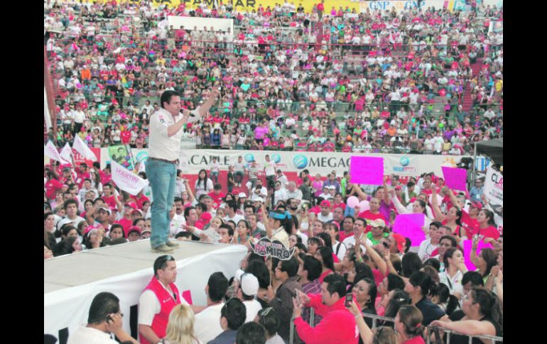 Jalisco | Aristóteles Sandoval se reune con candidatos locales Con estructura completa El candidato del PRI, Jorge Aristóteles Sandoval, se reune con candidatos locales Por: EL INFORMADOR 2 de junio de 2012 - 02:29 hs Aristóteles Sandoval visitó la Colonia Miravalle y tuvo un evento en la Plaza de Toros (imagen). ESPECIAL / GUADALAJARA, JALISCO (02/JUN/2012).- En una comida en las instalaciones de la CROC Jalisco, el candidato del PRI a la gubernatura, Aristóteles Sandoval, destacó que a un mes de la elección las estructuras están completas, “nuestro partido en la coalición ya completó a su ejército de ciudadanos que nos representarán el 1 de julio”. En compañía de los candidatos a diputados locales Leobardo Alcalá y Fabián García, dijo que está contento porque “ustedes son parte de este momento trascendental que vive el país. Es nuestra obligación llevar a mejor destino a Jalisco. Recuperemos el rumbo. Falta poco, a partir de que salimos de aquí, vamos a redoblar esfuerzos para demostrar que vamos a ganar con amplio margen y de manera contundente. Éste es el nuevo PRI”. Del PRI del pasado, dijo, “nos quedamos con el que originó los apoyos a la gente, a los comerciantes, a las amas de casa, a los jóvenes. Con el que fundó el IMSS, el ISSSTE, el que garantizó la educación gratuita, los programas de vivienda para trabajadores. Es el PRI con el que retornaremos al poder”. El abanderado tricolor reiteró, ante la estructura priista del distrito 12, que en su plan de gobierno hay proyectos para insertar a las personas con discapacidad al mercado laboral, que ampliará las redes de internet gratuito en distintos puntos de la ciudad y que apoyará a los jóvenes con transporte gratuito para que sigan estudiando. Repitió su discurso contra el abanderado de Movimiento Ciudadano, Enrique Alfaro. Resaltó que él sí representa un cambio verdadero, que no hace alianzas perversas, “ni utilizo a todos los partidos para después engañar a la gente mostrando un falso rostro ciudadano. Yo les digo que con la población es con la única que vamos a pactar, ésa es nuestra única gran alianza”. LAS PROPUESTASReitera compromisos Insertar a las personas con discapacidad en el mercado laboral. Ampliar las redes de internet gratuito. Apoyar a los jóvenes con transporte gratuito para que sigan estudiando. Temas Municipios PRI Jalisco PVEM Jalisco Aristóteles Sandoval Política en Jalisco Elecciones Jalisco 2012 Lee También Morena Jalisco respalda Reforma Judicial Comienza en Jalisco la Campaña Nacional de Vacunación de invierno Charros de Jalisco buscará frenar su racha negativa en juegos inaugurales de la LMP Autos con estas placas deben realizar la Verificación Vehicular antes del 31 de octubre Recibe las últimas noticias en tu e-mail Todo lo que necesitas saber para comenzar tu día Registrarse implica aceptar los Términos y Condiciones