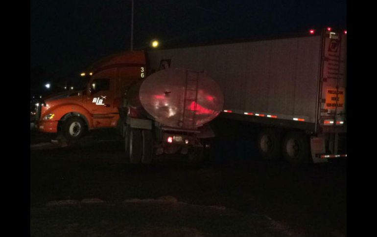 GUADALAJARA, JALISCO (28/MAR/2017).- El choque entre una pipa cargada con gasolina y un tráiler detuvo esta noche el tráfico en El Salto y obligó a hacer labores de limpieza en la carretera, ante una fuga de combustible que se extendió casi por 200 metros.El accidente ocurrió en la carretera a La Alameda, en el municipio de El Salto. El conductor de la pipa, que transportaba 20 mil litros del combustible, sufrió lesiones leves mientras que el del tráiler escapó del sitio, según reportó la Unidad Estatal de Protección Civil de Jalisco.Aunque la emergencia quedó controlada poco antes de las 21:00 horas, el impacto al tráfico y la vigilancia de los socorristas continuó en el lugar.