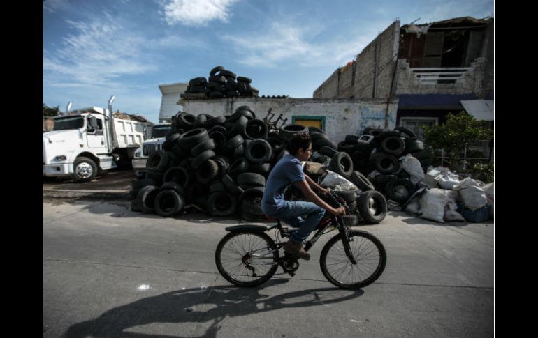 GUADALAJARA, JALISCO (04/AGO/2017).- En Oblatos hay llantas tiradas en las calles, banquetas y zonas habitacionales. El director de Mantenimiento Urbano del Ayuntamiento de Guadalajara, Gabriel Real Huízar, afirmó que se trata del espacio con más tiraderos clandestinos de neumáticos en el municipio.Durante un recorrido por esta zona, se encontraron decenas de estos residuos amontonados por todas partes. Un caso extremo se ubicó en la privada San Inocencio, entre Rivas Guillén y San Eugenio, en el interior y exterior de la finca de un particular. Real Huízar aseguró que en este lugar retiraron dos mil llantas en dos visitas.“Imagínese el foco de infección que tenemos, los zancudos están de una manera exagerada en toda la cuadra; el riesgo es que le prendan y todo se nos queme. Luego vienen, se las llevan y vuelve a estar igual”, se quejó un vecino.Además, mientras en 2014 la administración de Ramiro Hernández recogió apenas 13 llantas de todos los canales municipales, entre enero y junio de 2017, la de Enrique Alfaro retiró 309. De acuerdo con Real Huízar, el canal Ciénega de Mata, en Oblatos, está entre los que más neumáticos acumularon. Otro punto en el que se encontraron neumáticos apiñados fue San Eugenio, en su cruce con Hacienda los Laureles. En esa cuadra se localizaron dos puntos de acopio con invasión en banqueta y calle.Los habitantes se quejaron de la mala imagen que ocasionan estos negocios y advirtieron del riesgo a la salud que puede traer mantener estos locales. Sobre todo por el dengue, pues han escuchado en las noticias que los neumáticos sirven como criaderos del mosco que transmite esta enfermedad.Junto a la Unidad Deportiva Plan de San Luis, cercana al panteón, se observaron llantas abandonadas en la acera. Los comerciantes refirieron que por las noches llegan personas a tirarlas. También dejan escombro y hasta un automóvil lleno de cacharros que se mantiene en el sitio.La coordinadora de Dengue, Zika y Chikungunya de la Secretaría de Salud Jalisco (SSJ), María Isabel Higuera Torres, reconoció que Oblatos es un área en la que ponen especial atención por la problemática que representan las llantas que las personas botan en la vía pública.“Alrededor del panteón tenemos algunos puntos incluso ya trabajados. Cuando nos permiten el acceso, y que vemos que no mueven o no se ve qué van a hacer con las llantas, entramos a trabajarlos. Es desgastante, pero entramos para hacer aplicación de larvicidas”.