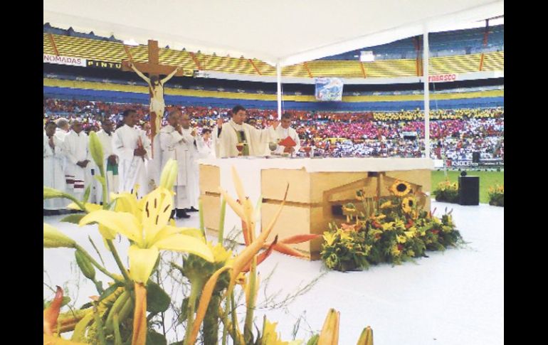 Jalisco | Encuentro Nacional de Jóvenes en el Espíritu Santo Convierten el Estadio Jalisco en espacio de oración Alrededor de 30 mil jóvenes de toda la República asistieron a este evento, que duró tres días Por: EL INFORMADOR 18 de julio de 2011 - 04:06 hs Christopher Pierre, nuncio apostólico en México, encabezó la ceremonia religiosa con la que concluyó el evento. M. PERDOMO. / -Guadalajara, sede de encuentro de jóvenes carismáticos católicos GUADALAJARA, JALISCO (18/JUL(2011).- Durante tres días el Estado Jalisco se convirtió en un espacio exclusivo para la oración y reflexión. Un promedio de 30 mil jóvenes provenientes de toda la República Mexicana participaron en el XXVI Encuentro Nacional de Jóvenes en el Espíritu Santo (ENJES), que ayer concluyó con una emotiva y colorida misa que encabezó el nuncio apostólico en México, Christopher Pierre. Desde temprana hora miles de jóvenes comenzaron a llegar al coloso de la Calzada Independencia. Sin embargo, el tiempo de espera se convirtió en toda una verbena de jóvenes católicos, pues mientras unos saboreaban la tradicional birria o las famosas tortas del estadio, otros bailaban y entonaban canciones religiosas. Claudia Flores López, originaria del Estado de Puebla, explicó que este es su quinto año consecutivo que participa en este encuentro, y para ella es un momento especial y de reflexión, pero 2010 fue diferente, porque se anunció que su Estado natal será el anfitrión del encuentro del próximo año. A pesar de la lluvia, los jóvenes no se ahuyentaron y, contrario a ello, llegadas las 15:00 horas ingresaron al estadio para participar en la celebración de la Eucarística, con la cual se efectuaría la clausura de estos tres días de actividades. La formalidad de una misa quedó a un lado, en esta ocasión las porras, los aplausos y un coro con toque de rock alegró el momento. El nuncio apostólico en México, Christopher Pierre, quien en repetidas ocasiones manifestó el agradecimiento a los jóvenes mexicanos, en la homilía pidió a los presentes evitar la violencia y construir un mundo lleno de amor y acercamiento a Dios. “Ustedes, jóvenes, no tengan miedo de tener una amistad con Jesús, no tengan miedo de oír la palabra de Dios con toda su radicalidad, no tengan miedo a comprometerse con Él”. PARA SABER Al concluir el evento se anunció que la próxima sede del XXVII Encuentro Nacional de Jóvenes en el Espíritu Santo será el Estado de Puebla. Temas Iglesia Católica en Jalisco Religión Municipios Jóvenes Lee También Un lugar intermedio… Ni para la foto hubo acuerdo Reforma judicial, una historia que se enreda Reforma Judicial en Jalisco: el riesgo de legislar con prisa Recibe las últimas noticias en tu e-mail Todo lo que necesitas saber para comenzar tu día Registrarse implica aceptar los Términos y Condiciones