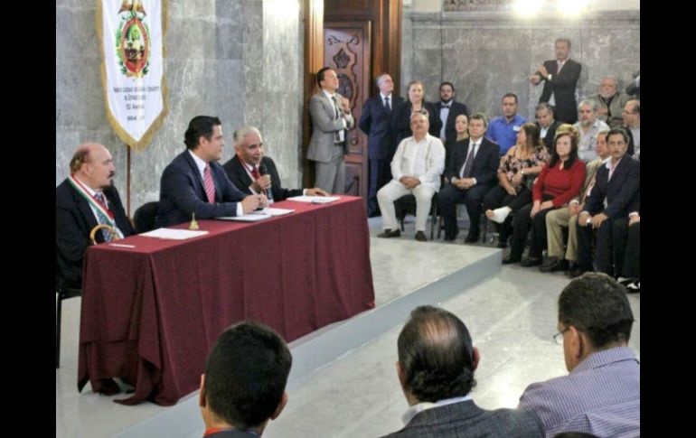 GUADALAJARA, JALISCO (04/SEP/2017).- La Benemérita Sociedad de Geografía rindió un homenaje al ex gobernador de Jalisco, Guillermo Cosío Vidaurri, en el salón de Ex Recinto Legislativo de Palacio de Gobierno estatal.El gobernador del Estado, Aristóteles Sandoval Díaz, destacó que durante la administración del homenajeado, se trabajó en resaltar la grandeza del estado, con uno de los proyectos más importantes para el Estado, como la construcción de la Línea Uno del Tren Ligero.Según el primer mandatario estatal, esta grandeza desapareció después, con la llegada del gobierno panista al Estado.Sin embargo, resaltó que actualmente Jalisco tiene en proceso uno de los proyectos más importantes para la movilidad en el Estado, como lo es la Línea Tres del Tren Ligero."La Línea Tres es el eje que articulamos en un nuevo sistema de movilidad y que responde a las exigencias del Área Metropolitana de Guadalajara y a la altura de sus ciudadanos".Calificó a Cosío Vidaurri como un hombre visionario, bien administrado y conocedor de la gestión pública. EL INFORMADOR / THAMARA VILLASEÑOR