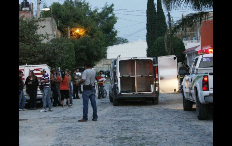 Jalisco | Los hechos se dieron en la Colonia Flores Magón Dan muerte a un hombre en la cochera de su casa Los hechos se dieron en la Colonia Flores Magón; le dispararon en dos ocasiones entre el tórax y abdomen Por: EL INFORMADOR 15 de septiembre de 2011 - 20:28 hs Paramédicos encontraron muerto un hombre identificado como Juvenal Aranda Pérez. O. RUVALCABA / TONALÁ, JALISCO (15/SEP/2011).- Cuando un hombre se encontraba en la cochera de su casa fue ejecutado por dos sicarios la tarde del jueves, en calles del municipio tonalteca. Fue alrededor de las 18:30 horas de este jueves, cuando elementos de la Policía Municipal recibieron reportes de una persona herida por arma de fuego, en el cruce de las calles Álamo y Linda Vista, en la Colonia Flores Magón. Al llegar junto con paramédicos encontraron muerto un hombre identificado como Juvenal Aranda Pérez, de 54 años de edad; le dispararon en dos ocasiones entre el tórax y abdomen. De acuerdo con lo explicado por los municipales, dos sicarios llegaron en una camioneta blanca y bajaron de ésta interceptando al hombre. Acto seguido lo metieron a su vivienda junto con una mujer que lo acompañaba quien fue sometida mientras el segundo pistolero ejecutaba al hombre. Ellos escaparon a pesar de que la Policía Municipal los buscó en la zona del crimen. Agentes de la Procuraduría estatal acudieron a realizar las investigaciones del caso junto con personal del Instituto Jalisciense de Ciencias Forenses, quienes encontraron dos casquillos del calibre 9 milímetros como evidencia del homicidio. EL INFORMADOR / OMAR RUVALCABA Temas Seguridad Ejecutados en Jalisco Lee También Gobierno de Jalisco reconoce histórico triunfo en la Paralimpiada Nacional EN VIVO: Maiceros bloquean carretera Guadalajara-Morelia ¿Qué exigen los productores de maíz? Aquí te decimos Liberan carretera Guadalajara-Morelia tras bloqueo de maiceros Recibe las últimas noticias en tu e-mail Todo lo que necesitas saber para comenzar tu día Registrarse implica aceptar los Términos y Condiciones