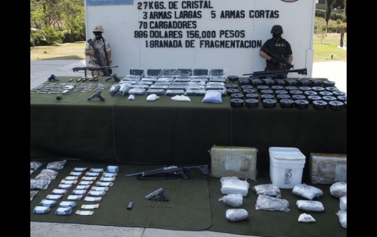 Jalisco | En Tonalá, Tlajomulco y Poncitlán Decomisan drogas y armas en tres municipios En atención a denuncias ciudadanas, se decomisaron drogas y armas en Tonalá, Tlajomulco y Poncitlán Por: NTX 6 de octubre de 2011 - 08:44 hs En Poncitlán una persona resultó detenida. NOTIMEX / ZAPOPAN, JALISCO (06/OCT/2011).- La Décimo Quinta Zona Militar informó hoy que en atención a denuncias ciudadanas y recorridos terrestres personal militar decomisó drogas y armas en diferentes acciones realizadas en tres municipios de Jalisco. Indicó que en el municipio de Tlajomulco de Zúñiga decomisaron 11 tambos metálicos con capacidad de 200 litros, conteniendo en su interior al parecer sustancias químicas precursoras para la elaboración de droga sintética y un vehículo. Puntualizó que en el municipio de Tonalá personal militar decomisó cuatro kilos 300 gramos de mariguana y ocho kilos 400 gramos de artificios pirotécnicos. Señaló que en el municipio de Poncitlán detuvieron a una persona con 201 gramos de metanfetamina, un arma larga, un arma corta, cuatro cargadores para diferentes armas, 86 cartuchos de diferentes calibres y ocho ollas de metal. Temas Seguridad Decomisos de droga en Jalisco Ayuntamiento de Tonalá Ayuntamiento de Tlajomulco de Zúñiga Recibe las últimas noticias en tu e-mail Todo lo que necesitas saber para comenzar tu día Registrarse implica aceptar los Términos y Condiciones