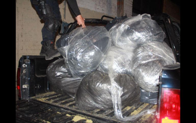 GUADALAJARA, JALISCO (22/ABR/2017).- La Policía de Guadalajara informó del decomiso de más de 170 kilos de aparente mariguana, encontrados en el marco del opertivo en contra del narcotráfico que se lleva a cabo en la zona del barrio de Analco por parte de los tres órdenes de gobierno.123 kilogramos fueron encontrados en un lote baldío ubicado sobre la calle Abasolo, entre las calles Federico Medrano y Aldama, en Guadalajara.La aparente droga se encontraba dentro de 13 bultos confeccionados con bolsas negras y plástico autoadherible, dijo la policía municipal.Los paquetes estaban escondidos en la maleza del predio, sin embargo fueron hallados gracias a un can de la corporación, entrenado en la detección de enervantes.Otros 50 kilos fueron localizados dentro de una camioneta de modelo atrasado que se hallaba abandonada sobre la calle Aldama a su cruce con Francisco Silva Romero, en la colonia San Juan de Dios.El aseguramiento del presunto enervante fue puesto a conocimiento de las autoridades federales quienes se encargarán de realizar las averiguaciones correspondientes para dar con los responsables.