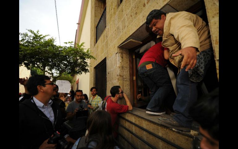 Jalisco | Durante altercado de la mañana, dos personas quedaron en el interior del Legislativo Denuncian 'secuestro' de dos jóvenes en el Congreso local Durante altercado de la mañana, dos personas quedaron en el interior del Legislativo Por: EL INFORMADOR 14 de diciembre de 2013 - 16:28 hs GUADALAJARA, JALISCO (14/DIC/2013).- Durante el altercado que tuvo lugar esta mañana en el ingreso al Congreso del Estado que se encuentra sobre la calle Independencia, dos jóvenes que intentaron ingresar al edificio por la fuerza quedaron adentro. Cuando forzaron el acceso entraron alrededor de 20 personas, pero éstos fueron rápidamente repelidos por el cartucho de gas lacrimógeno que se detonó. Dos quedaron en su interior y, de acuerdo con quienes los vieron antes de cerrar el portal, estaban siendo golpeados por los policías antimotines que estaban adentro. "Necesitan atención médica (...) no sé si haya más adentro", expuso la profesora Silvia Gómez Partida, madre de uno de ellos. Rato después, el representante del Partido Movimiento Ciudadano, Enrique Ibarra Pedroza, confirmó que el diputado Clemente Castañeda ya le había reportado que "intercedió" por ellos para que dejaran de golpearlos. Según el ex legislador, los oficiales durmieron en el edificio legislativo, toda vez que "los metieron como los ladrones: en la madrugada". "Traidores a la patria" Una vez que la Reforma Energética se aprobó en Jalisco la manifestación cobró más fuerza, y apoyados con megáfonos, los opositores al paquete de reformas impulsadas desde Presidencia de la República gritaron, uno por uno, los nombres de los diputados que dieron su voto a favor para, acto seguido, gritar insultos o calificarlos como "traidores a la patria". En las calles próximas al Congreso aún se observan varios jóvenes con el rostro cubierto. Y salvo los vehículos que resultaron con rayones y fueron pintados con aerosol, se han mantenido en calma hasta este momento. Quienes tienen su rostro descubierto llaman a mantener la calma, e incluso piden que al percibir un conato de bronca, todos se sienten en el suelo, para identificar de inmediato a los rijosos. Las expresiones políticas o federaciones estudiantiles tampoco tienen cabida en la protesta, pues cuando un regidor de Movimiento Ciudadano en Zapopan trató de tomar la palabra y se presentó como "ex priista", varios integrantes le pidieron que guardara silencio y se fuera, pues "esto no es un mitin". Una situación similar se observó cuando miembros de la Federación de Estudiantes Universitarios se integraron a la protesta. Se les pidió abandonar el sitio, pues no pretendían centrar los reflectores en una agrupación en particular. De igual forma ocurrió la primera vez que un reportero de Televisa, acompañado por su camarógrafo, trató de acercarse al grupo de manifestantes. Ambos trabajadores fueron insultados y "escoltados" a otro lado, impidiéndoles dar cobertura a la manifestación. EL INFORMADOR / ISAACK DE LOZA Temas Reforma Energética Congreso local Manifestaciones en Jalisco Recibe las últimas noticias en tu e-mail Todo lo que necesitas saber para comenzar tu día Registrarse implica aceptar los Términos y Condiciones