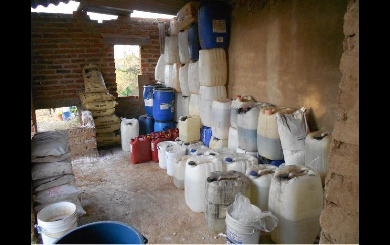 Jalisco | Aseguraron 500 kilos de crystal y dos mil kilos de ácido fenil acético Desmantelan narcolaboratorio en Zapotlanejo Aseguraron 500 kilos de crystal y dos mil kilos de ácido fenil acético Por: EL INFORMADOR 2 de diciembre de 2011 - 13:40 hs Con el aseguramiento de este laboratorio clandestino para elaborar droga sintética, suman 61 los que han sido localizados. / ZAPOTLANEJO, JALISCO (02/DIC/2011).- Un narcolaboratorio más fue desmantelado por soldados en tierras jalisciense, con el que suman 61 los destruidos en este 2011. De acuerdo con lo informado por soldados de la XV Zona Militar, recibieron varias denuncias anónimas en las que manifestaban actividades sospechosas en un rancho conocido como Palo Colorado, ubicado en el municipio de Zapotlanejo. Los militares realizaron trabajos de investigación y se trasladaron al dicho lugar, donde encontraron que en una finca que funcionaba como narcolaboratorio, además que aseguraron 500 kilos de crystal y dos mil kilos de ácido fenil acético. Por el hallazgo, los militares informaron a un agente del Ministerio Público de la Federación para que acudiera e iniciar las investigaciones del caso. Materia prima y equipo decomisados · 200 kilogramos de sosa cáustica. · 160 litros de cloro. · 100 kilogramos de ácido acetil salicílico. · 75 kilogramos de acetato de sodio. · 80 kilogramos de ácido tartárico. · 50 kilogramos de ácido tolueno. · Tres tambos con capacidad para 200 litros, con papel aluminio triturado. · Tres cilindros de gas. · Un cilindro de oxígeno. · Cinco máscaras antigás. · 20 tambos de diferentes capacidades. · 30 cubetas de plástico. · 20 bidones con capacidad para 20 litros. Lo asegurado es utilizado en la elaboración del crystal. EL INFORMADOR / OMAR RUVALCABA Temas Seguridad Decomisos de droga en Jalisco Narcolaboratorio Lee También Empresarios esperan alza en generación de empleo Cartucho Desapariciones: empatía abollada ¿Sabrá el gobernador? Recibe las últimas noticias en tu e-mail Todo lo que necesitas saber para comenzar tu día Registrarse implica aceptar los Términos y Condiciones