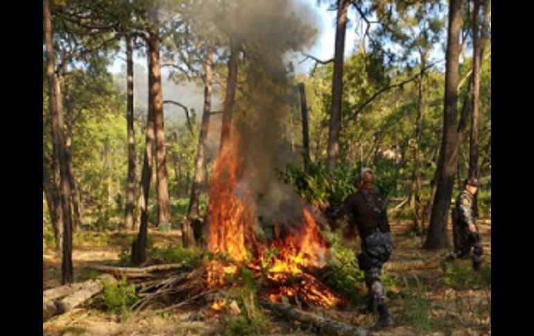 Jalisco | Se trata de dos plantíos destruidos con una extensión de unos 10X80 metros cada uno Destruyen en Amatitán 22 mil plantas de mariguana Se trata de dos plantíos destruidos con una extensión de unos 10X80 metros cada uno Por: NTX 5 de junio de 2016 - 18:21 hs Aseguran que las matas del enervante se encontraban repartidas en el predio aproximadamente de ocho plantas por metro cuadrado. ESPECIAL / Fiscalía de Jalisco GUADALAJARA, JALISCO (05/JUN/2016).- La Fiscalía General de Jalisco informó que elementos de la Fuerza Única Regional y de la Policía Investigadora destruyeron unas 22 mil plantas de mariguana cerca del municipio de Amatitán. Señaló que el predio con el sembradío, con una extensión de unos 50x50 metros, fue localizado en una zona de difícil acceso de la sierra en el norte de la entidad, cerca de la localidad del Salvador, a hora y media del municipio de Amatitán, colindante con el estado de Zacatecas. Señaló que se trata de dos plantíos destruidos sembrados de mariguana, con una extensión de unos 10X80 metros cada uno. Los terrenos contaban con algunos espacios para depositar agua y de esa manera facilitar el riego y manutención de las plantas, aunque aclaró que en el operativo no hubo detenidos. Indicó que las 22 mil matas del enervante se encontraban repartidas en el predio aproximadamente de ocho plantas por metro cuadrado. Subrayó que mantendrá operativos permanentes en los municipios del interior del estado, para detectar y destruir la siembra de estos enervantes que perjudican la salud de las personas. Temas Seguridad Drogas Mariguana Lee También Detienen a presunto homicida en Lomas de Oblatos Hombre es condenado por abuso sexual cometido contra su hijastro Presumen reducción de delitos en Jalisco; al alza robo de motocicletas Detienen a presunto extorsionador del sector limonero en Michoacán Recibe las últimas noticias en tu e-mail Todo lo que necesitas saber para comenzar tu día Registrarse implica aceptar los Términos y Condiciones