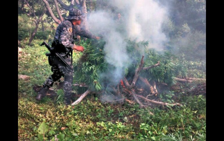 GUADALAJARA, JALISCO (26/JUL/2017).- La Procuraduría General de la República (PGR) Delegación Jalisco informó que inició una carpeta de investigación contra quien o quienes resulten responsables por el delito contra la salud derivado de la destrucción de tres plantíos de mariguana.Señaló que elementos de la Fuerza Única hicieron del conocimiento al fiscal de la Federación que al realizar diversos recorridos de vigilancia en el ejido "Los Parajes" del municipio de Cocula, localizaron tres sembradíos de mariguana.Puntualizó que en estos predios las autoridades destruyeron por medio de incineración 64 mil 800 plantas de mariguana.Indicó que en dicho lugar se recabaron muestras representativas, que fueron puestas a disposición del Ministerio Público de la Federación, quien continúa con la integración de la carpeta de investigación correspondiente para resolver conforme a derecho.