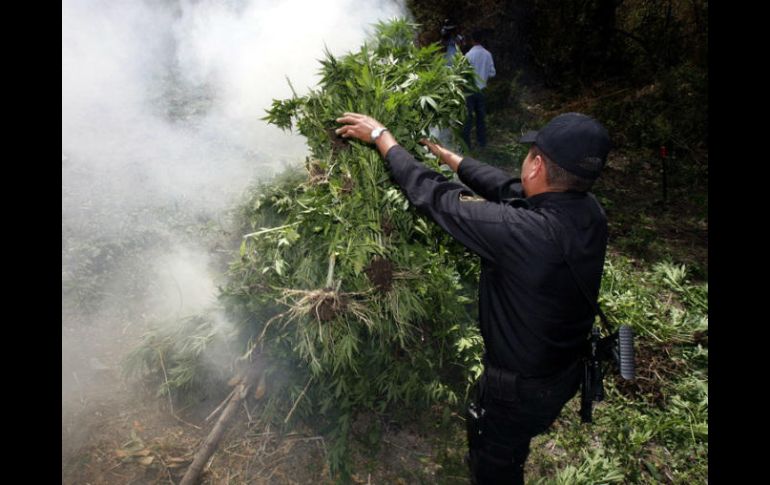 GUADALAJARA, JALISCO (19/SEP/2017).- La Delegación de la PGR en Jalisco informó que inició una carpeta de investigación contra quien o quienes resulten responsables por el delito contra la salud derivado de la destrucción de 22 plantíos de mariguana.Destacó que elementos de la Fuerza Única Regional hicieron del conocimiento al representante público de la Federación que al realizar diversos recorridos de vigilancia en las inmediaciones de la Delegación El Salvador, en el municipio de Tequila, localizaron las extensiones de terreno.Apuntó que en estos predios, los efectivos destruyeron, por medio de incineración, 805 mil ocho plantas de mariguana, con una altura de entre 1.00 y 1.80 metros.Resaltó que en estos lugares se recabaron muestras representativas, que fueron puestas a disposición del Ministerio Público de la Federación, quien continúa con la integración de la carpeta de investigación correspondiente para resolver conforme a derecho.