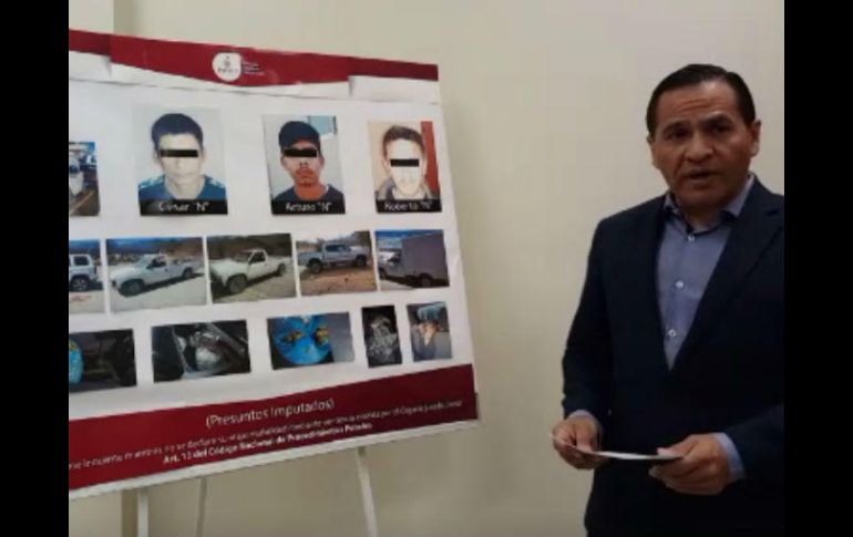GUADALAJARA, JALISCO (17/FEB/2017).- El fiscal del Estado Edualdo Almaguer, dio a conocer la detención de tres sujetos integrantes de una banda delictiva que operaba en el norte de Zapopan.El fiscal refirió que este grupo estaba vinculado a los delitos de secuestro, narcotráfico y de desaparición de personas y que operaba en las colonias de Tesistán, Santa Lucía y Nextipac.Agregó que la investigación por parte de la fiscalía inició el pasado domingo 12 de febrero cuando fue asesinado un hombre dentro de una tienda de conveniencia en Zapopan, reconocido como 'Álvaro N' y que contaba con antecedentes por secuestro y narcotráfico, así como una orden de aprehensión por homicidio calificado.Almaguer dijo que gracias al operativo de las fuerzas especiales de seguridad del comisionado, por tierra y aire, en el municipio de San Martín de Bolaños donde fueron detenidos tres sujetos reconocidos como 'César N', 'Arturo N' y 'Roberto N' y se logró el aseguramiento de cinco vehículos, tres camionetas tipo Pick up, una tipo Jeep y otra más de carga, todas con reporte de robo en el municipio de Zapopan.Además se les decomisó un radio de onda corta, una granada de fragmentación, cartuchos con cargadores y tiros útiles de calibre 7.62. Almaguer destacó que dentro de los vehículos se encontraron cerca de 800 gramos de mariuguana., así como uniformes de fuerzas de seguridad regional falsos.El fiscal pidió a la ciudadanía que en caso de reconocer a estos sujetos, acudan a realizar una denuncia a las instalaciones de la Fiscalía General o que llamen al teléfono 38 37 60 00 en la extensión 16090 para ampliar las investigaciones y aplicar las medidas correspondientes.