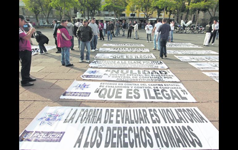 Jalisco | Elementos ''no aptos'' realizan manifestación en la Plaza de la Liberación Diputados se comprometen a revisar quejas de policías reprobados El líder del PRI en el Congreso local, Miguel Castro, asegura a manifestantes que el tema será analizado en comisiones Por: EL INFORMADOR 24 de enero de 2013 - 03:12 hs Consignas. Los manifestantes colocaron las pancartas con sus demandas sobre la plancha de la Plaza de la Liberación. EL INFORMADOR / GUADALAJARA, JALISCO (24/ENE/2013).- Tras la manifestación de alrededor de 200 personas ayer en la Plaza de la Liberación, en protesta por el proceso de evaluación de los elementos de seguridad pública en el Estado, un grupo de inconformes, encabezado por el presidente del Colegio de Abogados Penalistas, José Luis Guízar, fue recibido por el líder de los diputados del PRI, Miguel Castro Reynoso. Cuando parecía que los manifestantes dejarían la Plaza de la Liberación, del Congreso les avisaron que el diputado Salvador Rizo los recibiría. Ya en el interior del recinto legislativo, José Luis Guízar reconoció al coordinador de la fracción del PRI, Miguel Castro Reynoso, y lo abordó. El legislador aceptó escuchar a los presentes, al igual que Rizo. “Entiendo que en el diseño de la aplicación de los exámenes hay muchos problemas, porque (por ejemplo) basta que alguien al contestar una prueba de polígrafo pueda dar una dádiva para poder pasar”, indicó el diputado tricolor. Aseguró que ya hay una petición para que el Congreso de la Unión revise el tema por “ser digno de atención” y ofreció: “Hago con ustedes el compromiso que este tema se revise al interior de comisiones, me parece que es un tema que debe ser tomado en cuenta en el pleno del Congreso”. Aunque, matizaría después, “no podemos meter las manos al fuego por todos los elementos (policiacos)”. Por su parte, Irving Ávalos, director del órgano técnico de la Comisión de Seguridad Pública y Protección Civil, dijo que el diputado José Luis Munguía Cardona, presidente de ese órgano legislativo, tiene cita hoy con el alcalde de Guadalajara, Ramiro Hernández, y el secretario de Seguridad Ciudadana, Carlos Mercado, “con el objetivo de saber cuál va a ser la solución para los elementos de seguridad pública”. También pretenden reunirse con otros munícipes. Señaló que una de las propuestas que está en el aire entre las autoridades es “permitirle a los elementos que no hayan sido acreditados, porque no se presentaron a alguno de los exámenes, volver a ser evaluados”. Demandas laborales y denuncias penales José Luis Guízar, quien asegura llevar cuatro mil casos de policías inconformes en Jalisco, dijo que son 300 las demandas laborales elaboradas y que seguirá interponiendo el recurso legal ante los tribunales administrativos. Asimismo, anunció que ayer mismo por la tarde presentarían denuncias penales ante la Procuraduría General de Justicia del Estado (PGJE) en contra del centro de evaluación “por abuso de autoridad”, y contra los secretarios de seguridad ciudadana de los municipios “por instaurar procedimientos administrativos para correr a los elementos”. Agregó que demandará ante los tribunales administrativos la nulidad de los exámenes del Centro Estatal de Evaluación y Control de Confianza, “porque está fuera de la ley”. EL DATOQuejas ante la CEDHJ El área de Comunicación Social de la Comisión Estatal de Derechos Humanos Jalisco informó que hasta las 13:00 horas de ayer se habían recibido 70 quejas en lo relativo a las pruebas de control de confianza. Sin embargo, la cifra podría aumentar, pues en la manifestación celebrada ayer José Luis Guízar exhortó a los presentes a presentar quejas ante el organismo. LUIS CARLOS NÁJERA“No habrá seguimiento a los cesados” Los elementos de las corporaciones de seguridad pública catalogados como “no aptos”, al no ser reubicados en otro puesto laboral, no tendrían seguimiento a sus casos y éstos podrían obtener fácilmente un “trabajo” ilegal debido a sus conocimientos operativos. El secretario de Seguridad Pública del Estado, Luis Carlos Nájera Gutiérrez de Velasco, dijo que “si no tenemos policías suficientes para patrullar calles, menos para seguir a la gente que es despedida”. Por su parte, el secretario ejecutivo del Consejo Estatal de Seguridad Pública, Ricardo Homero Salas Torres, explicó que desconocen los reglamentes de cada Policía Municipal o del Estado y que si llegaría a darse un seguimiento a cada policía “no apto”, lo tendría que hacer la dependencia, pero no el Centro Estatal de Control de Confianza. Temas Seguridad CEDHJ Diputados Luis Carlos Nájera Certificación policial Recibe las últimas noticias en tu e-mail Todo lo que necesitas saber para comenzar tu día Registrarse implica aceptar los Términos y Condiciones