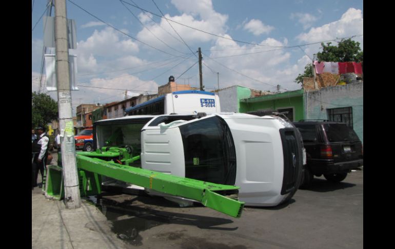 Jalisco | En diferentes hechos, dos vehículos terminaron volcados en calles de Guadalajara Dos autos vuelcan en accidentes en la ciudad este viernes En diferentes hechos, dos vehículos terminaron volcados en calles de Guadalajara Por: EL INFORMADOR 6 de junio de 2014 - 17:53 hs Al parecer, el conductor de la camioneta con el pelícano no esperó a que el midibús pasará. / GUADALAJARA, JALISCO (06/JUN/2014).- Una accidentada tarde dejó entre otros percances dos vehículos volcados en distintos hechos, en uno de los cuales se vio involucrada una unidad del transporte público que, sin embargo, al parecer no fue la causa del incidente según las primeras apreciaciones de las autoridades. El primer hecho ocurrió hacia las dos de la tarde en el cruce de las calles Ingeniero Tello y Rosales, en la colonia Los Meseros en San Pedro Tlaquepaque. Un midibús de la ruta 611-A, número S-0584, circulaba hacia el oriente sobre Rosales, vialidad que tiene preferencia de paso. Al llegar al cruce con Ingeniero Tello frenó bruscamente pues se topó con una camioneta Ford blanca, placas JS-705-57, que se disponía a buena velocidad a incorporarse a Rosales. La camioneta también se frenó. Ésta pertenecía al Ayuntamiento ya que contaba con un pelícano en la caja para labores en las alturas. El conductor de la misma, Francisco Zárate Serafín, no esperó a que el midibús pasara sino que aceleró y dio vuelta a su izquierda para tomar Rosales. Fue que el peso del pelícano que cargaba ocasionó que perdiera el control y fuera a chocar contra la parte trasera del midubús y con un Jeep Grand Cherokee, placas JEP-3209, que circulaba detrás del transporte público. El impacto provocó que a su vez la camioneta volcara sobre su costado derecho. El chofer de la camioneta del Ayuntamiento de San Pedro Tlaquepaque resultó con lesiones leves; su acompañante, Luis Ángel Madrigal Preciado, tuvo lesiones regulares. El chofer del Jeep, José Saldivar Rodríguez, salió ileso, lo mismo que el del midibús, Joaquín Pérez Ortega; sin embargo, éste último quedó en calidad de retenido. En distintos hechos, otra camioneta volcó en el cruce de Niños Héroes y Unión a causa de un choque entre un camión repartidor y una camioneta Jeep. La causa del incidente estará por determinar pues uno de los dos vehículos no respetó el semáforo. Sólo una persona, el conductor del repartidor, resultó con lesiones leves. Temas Seguridad Accidentes Calles y vialidades de Guadalajara Recibe las últimas noticias en tu e-mail Todo lo que necesitas saber para comenzar tu día Registrarse implica aceptar los Términos y Condiciones