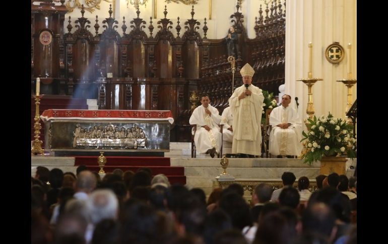GUADALAJARA, JALISCO (05/OCT/2016).- El cardenal de Guadalajara, José Francisco Robles Ortega reconoció a EL INFORMADOR como un agente de "gran trabajo de servicio a la información y sociedad" en Jalisco.Durante una misa celebrada en la Catedral Metropolitana, el jerarca católico celebró el arranque al Centenario de esta Casa Editorial, entre fieles y trabajadores del diario que asistieron a la ceremonia eucarística.Con la presencia de Don Carlos Álvarez del Castillo, director-editor de EL INFORMADOR, Robles Ortega señaló que durante el inicio de este Centenario "tendremos oportunidad de conocer los esfuerzos más grandes que ha significado esta empresa por el bien de la sociedad".El cardenal destacó la decisión del capital humano del periódico de iniciar este nuevo año de labores escuchando la palabra suprema, que es la de Dios."Queremos pedir que esta empresa se mantenga al servicio de la información", dijo. El arzobispo tapatío citó una reflexión del Papa Francisco: "La información que necesitamos es la que nos comprometa a servir al ser humano y a nuestro planeta"."Que la información sea fiel a la verdad; y que tenga como base la cuestión ética", pidió el cardenal al tiempo que hizo un llamado al respeto entre las distintas posiciones políticas e ideológicas de las personas.Agradeció que EL INFORMADOR sea la fuente de trabajo y el sostén de muchas familias jaliscienses.EL INFORMADOR / ÓSCAR ÁLVAREZ