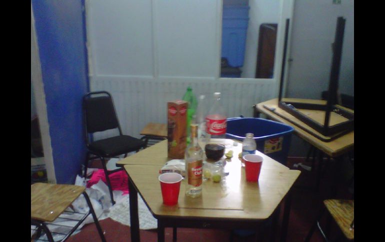Jalisco | Esta mañana fueron desalojados los miembros de la organización estudiantil Edificio tomado por la FEG regresa a poder de la SEJ La madrugada de este sábado los miembros de la organización estudiantil fueron desalojados por la fuerza pública Por: EL INFORMADOR 3 de septiembre de 2011 - 13:15 hs Los manifestantes dejaron botellas con bebidas embriagantes y latas de cerveza en el plantel . O. GARCÍA / GUADALAJARA, JALISCO (03/SEPTIEMBRE/2011).- Después del llamado que hizo el secretario de educación, Antonio Gloria Morales, a los miembros de la Federación de Estudiantes de Guadalajara (FEG) para que desalojaran el edificio de la Normal, que fue tomado desde el miércoles pasado; de lo contrario se haría uso de la fuerza pública, ayer por la noche Policía del Estado desalojo a los cerca de 50 manifestantes que tenían tomadas las instalaciones. Hoy por la mañana, con el resguardo de personal de la misma corporación policíaca resguardan el inmueble ubicado en la Glorieta La Normal, a escasos 200 metros del edificio de la Secretaria de Educación Jalisco (SEJ). En un recorrido hecho por EL INFORMADOR, se pudo comprobar como los manifestantes dañaron el mobiliario en La Cafetería, la Prefectura y el Comité de la sociedad de alumnos, donde se pudieron encontrar botellas con bebidas embriagantes y latas de cerveza. Además, la subdirectora del plantel, Martha Elena Plascencia, señaló que bodegas y otras áreas del lugar fueron utilizadas como letrinas, mientras que hubo saqueo tanto en la Cafetería como en máquinas expendedoras de productos alimenticios. "Esta mañana ya pudimos entrar, como a las siete de la mañana, y ahora el edificio se queda a resguardo de la gente que nos mandó la Secretaria" dijo la funcionario, quien fue la guía en el recorrido donde se pudo observar puertas vencidas, candados averiados y paredes "grafiteadas". Plascencia adelantó que el próximo lunes regresarán a clases en normalidad "en punto de las 7 de la mañana". En el desalojo las autoridades estatales no reportan hasta el momento a ningún detenido. EL INFORMADOR / OMAR GARCÍA Temas SEJ Educación local FEG Lee También Beca Rita Cetina: ¿Quiénes reciben el pago en la semana del 13 al 17 de octubre? UdeG: 100 años haciendo historia La UdeG: pilar de la educación, la cultura y la salud Identidad, el legado de la UdeG a Jalisco: Karla Planter Recibe las últimas noticias en tu e-mail Todo lo que necesitas saber para comenzar tu día Registrarse implica aceptar los Términos y Condiciones