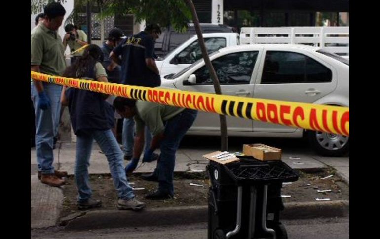 Jalisco | El ataque ocurrió al interior de una tienda de abarrotes Ejecutan a una persona en Guadalajara El ataque ocurrió al interior de una tienda de abarrotes Por: EL INFORMADOR 17 de diciembre de 2010 - 05:32 hs Los causantes fueron tres individuos que huyeron a bordo de un vehículo Nissan. M. PATIÑO / GUADALAJARA, JALISCO (17/DIC/2010).- Cuando acudió a una tienda de abarrotes a realizar algunas compras, un hombre fue ejecutado de por lo menos dos impactos de bala. El ataque ocurrió al interior de una tienda de abarrotes, situada en el numeral 208 de la calle Laura Apodaca, a su cruce con Enrique Granados, en la colonia Insurgentes del municipio de Guadalajara. En ese mismo lugar, la víctima fue identificada por sus familiares como Humberto Rodríguez Moreno, de 25 años de edad, quien tenía su domicilio en la calle Enrique Granados. De acuerdo con elementos de la Policía Municipal, los causantes fueron tres individuos que huyeron a bordo de un vehículo Nissan Platina en color plata, de quienes hasta el momento no se ha reportado su detención. En el sitio fueron localizados tres cascajos de bala, uno del calibre .9 milímetros y dos de .38 súper. Peritos del Instituto Jalisciense de Ciencias Forenses (IJCF) realizaron el levantamiento del cuerpo. Temas Seguridad Policía de Guadalajara Ejecutados en Jalisco Recibe las últimas noticias en tu e-mail Todo lo que necesitas saber para comenzar tu día Registrarse implica aceptar los Términos y Condiciones