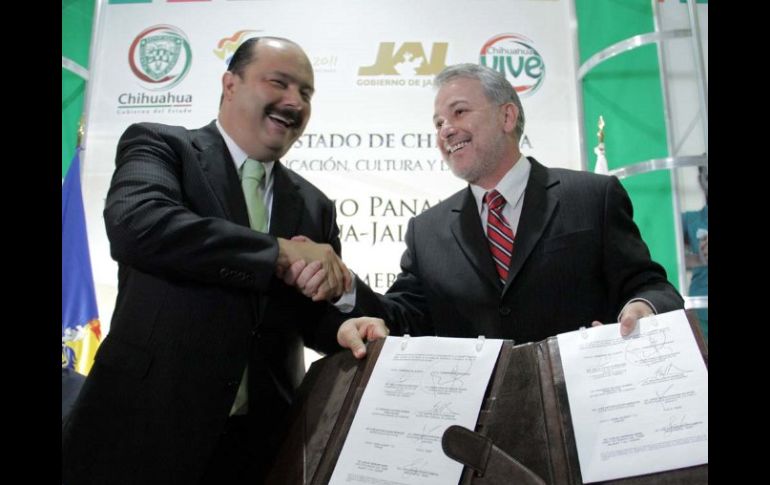 Jalisco | Rumbo a los Juegos Panamericanos Guadalajara 2011 Ejecutivo local y Chihuahua firman convenio de colaboración La firma del convenio permitirá mostrar sus tradiciones y cultura durante la celebración del evento Por: EL INFORMADOR 14 de diciembre de 2010 - 19:54 hs Los gobernadores de los estados de Chihuahua y Jalisco, César Duarte (izq) y Emilio González respectivamente. ESPECIAL / CHIHUAHUA, CHIHUAHUA (14/DIC/2010).- Los gobiernos de Jalisco y Chihuahua firmaron el convenio de colaboración que permitirá a esta entidad vivir más de cerca la experiencia y preparación de los Juegos Panamericanos Guadalajara 2011, así como mostrar sus tradiciones y cultura durante la celebración del evento. El acto protocolario fue encabezado por los gobernadores de Jalisco, Emilio González Márquez, y de Chihuahua, César Duarte Jáquez, en el Salón 25 de marzo de Palacio de Gobierno. Durante su mensaje, el Mandatario jalisciense reiteró que los Juegos Panamericanos son de todo México y no sólo de Guadalajara por lo que deben ser una experiencia que se viva en toda la República y que sirva para mostrar la verdadera cara del País. “Lo que queremos es que en el mundo se conozca la verdadera cara de México y conozcan a los jóvenes atletas participando, pero conozcan también las tradiciones de Chihuahua, que conozcan las bellezas naturales de Chihuahua y conozcan el empuje de la gente de Chihuahua, que transforma su realidad buscando una sociedad mejor”, comentó González Márquez. “Esto nos da también los Panamericanos, esa posibilidad de fortalecer nuestra identidad como mexicanos, compitiendo de la mano, los chihuahuenses, los jaliscienses, buscando la gloria deportiva para nuestra Patria”, sostuvo. El Mandatario jalisciense añadió que al igual que Chihuahua, Jalisco considera de gran importancia las actividades deportivas, por ser garantías para una sociedad sana, unida y armoniosa. Emilio González invitó al Gobernador anfitrión para que el estado de Chihuahua pueda presentar sus raíces culturales a través de las capsulas televisivas que serán transmitidas en distintos horarios a nivel internacional, mismas que forman parte de las 700 horas de producción de televisión ya contratadas en el marco de la Justa Continental. La firma del convenio permitirá a Chihuahua participar libremente en seminarios de medicina del deporte, diseño de infraestructura deportiva, organización de eventos deportivos, capacitación para entrenadores, entrenamientos de alto rendimiento y otras actividades. Por su parte, el Gobernador de Chihuahua, César Duarte Jáquez, agradeció al Gobierno de Jalisco la oportunidad de poder ser parte de este evento, al que consideró de gran importancia por los mensajes que envirará México a todo el mundo. Emilio González no se descarta para 2012 Una vez más, el gobernador de Jalisco reconoció su interés por ser el abanderado del Partido Acción Nacional (PAN) para la elección presidencial del 2012, y ahora lo hizo en tierras norteñas. Emilio González Márquez dijo a la prensa que "No se descarta" para la contienda por la presidencia, y matizó "pero no me apunto". De visita en Chihuahua, González declaró que el candidato "fuerte" del PAN en este momento es Santiago Creel Miranda. Sostuvo que aún no son tiempos de destaparse por la candidatura, y aseguró que las visitas que realiza a diferentes estados del país no son de promoción personal, por el contrario, dijo, se encuentra difundiendo las bondades de Jalisco y llamando a los "mexicanos a sentirse orgullosos de serlo". Ya en noviembre González habló abiertamente en Guadalajara sobre sus aspiraciones presidenciales, incluso consideró que los partidos PAN y de la Revolución democrática (PRD) debiesen de ir en alianza en el 2012 para poder ganar no solo el ejecutivo Federal sino también una mayoría en el Congreso. En la firma del convenio, los dos mandatarios intercambiaron presentes, el jalisciense trajo consigo una medalla conmemorativa de los Panamericanos, en tanto Duarte le obsequió un perro chihuahueño, mismo que fue bautizado como Agave por su nuevo dueño. Con información de El universal Temas Gobierno del Estado Emilio González Juegos Panamericanos 2011 César Duarte Recibe las últimas noticias en tu e-mail Todo lo que necesitas saber para comenzar tu día Registrarse implica aceptar los Términos y Condiciones