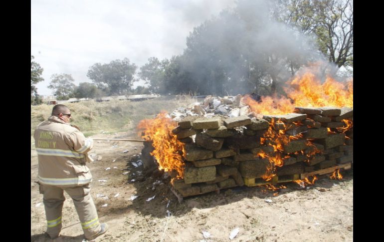 Jalisco | Mandos de la V Región Militar hacen una evaluación de actividades de abril de 2014 Ejército asegura más 42 litros de combustible robado Mandos de la V Región Militar hacen una evaluación de actividades de abril de 2014 Por: EL INFORMADOR 5 de mayo de 2014 - 10:14 hs También son quemados cinco mil 367 kilos de mariguana que estaban empaquetados. ARCHIVO / ZAPOPAN, JALISCO (05/MAY/2014).- Más de 42 litros de combustible, robado, fueron recuperados por soldados de la V Región Militar, durante el mes de abril, así lo informó comandante General de División Diplomado de Estado Mayor, Roberto Gustavo García Vergara. El general explicó en un comunicado de prensa, que durante las acciones realizadas en las entidades a su mando, Nayarit, Zacatecas, Aguascalientes, Colima y Jalisco fueron sorprendidas 55 personas realizando actividades ilegales. Además, se detalló que fueron quemados 470 plantíos de mariguana, sembrados en 81 hectáreas, también fueron localizados 342 sembradíos de amapola localizados, en 73 hectáreas. También fueron quemados cinco mil 367 kilos de mariguana que estaban empaquetados, y desmantelaron cuatro secaderos, un narcolaboratorio y cuatro campamentos. García Vergara, explicó que encontraron cuatro tomas clandestinas a los ductos de Petróleos Mexicanos ( Pemex) además de asegurar 25 mil 718 litros de gasolina y 16 mil 420 de diésel. Otros aseguramientos • 208 dosis de mariguana. • 65 kilogramos de semilla de mariguana. • 71 dosis de cocaína. • Seis dosis de crystal. • 18 dosis de cocaína en forma de piedra. • 24 dosis de droga conocida como "ICE". • 21 armas de fuego. • 99 cargadores para diversas armas. • Dos mil 629 balas de diferentes calibres. • Tres granadas. • 231 mil 333 pesos. • 23 dólares. • 700 litros de precursores químicos. • 16 equipos de comunicación (radios y celulares). • 49 vehículos. • Cinco motocicletas. ¿Cómo denunciar a la delincuencia organizada? La V Región Militar invita a la ciudadanía a denunciar a la delincuencia organizada al teléfono (33) 3658-1705 o al correo electrónico: denuncia.vrm@mail.sedena.gob.mx. Temas Seguridad Ejército Drogas Mariguana Militares Lee También Elementos de seguridad detienen a traficante sueco en Cancún Detienen a asesino de joven en partido de futbol Tras persecución policial, localizan 70 kilos de marihuana en Tuxpan Policía de Zapopan realiza cinco detenciones en una semana Recibe las últimas noticias en tu e-mail Todo lo que necesitas saber para comenzar tu día Registrarse implica aceptar los Términos y Condiciones