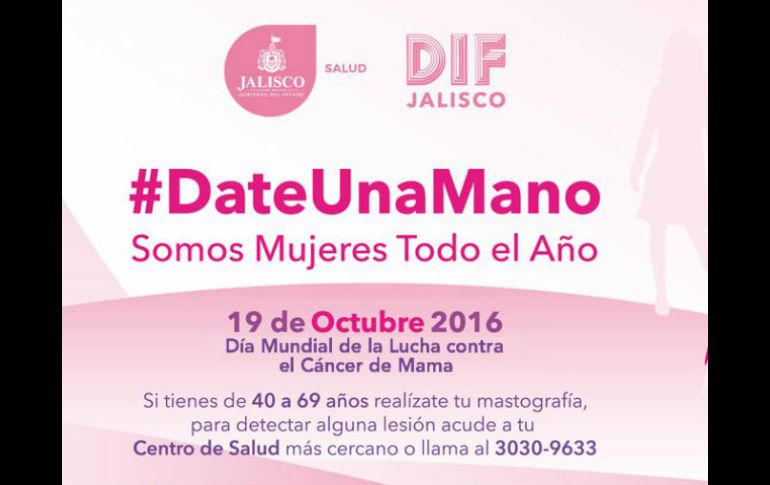 GUADALAJARA, JALISCO (15/OCT/2016).- El DIF Guadalajara invitó a las mujeres tapatías a la Jornada de Prevención de Cáncer de Mama, el cual se realizará en el marco del Día Mundial del Cáncer de Mama, con conferencias, talleres, mastografías y más, ello sin costo a la población.La cita es el día lunes 17 de octubre a las 10:00 horas en la explanada del Centro de la Amistad Internacional, ubicado en Calle Eulogio Parra #2539 Colonia Circunvalación Guevara.Acudirán José Miguel Santos Zepeda, Director General del Sistema DIF Guadalajara y personalidades de distintas instituciones dedicadas a la prevención y atención del cáncer de mama.