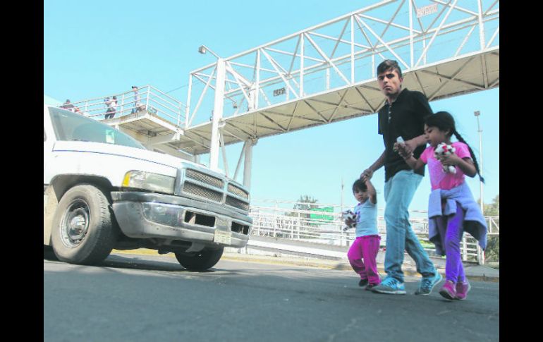 Jalisco | Falta infraestructura y cultura vial El Periférico, 8 de Julio y Lázaro Cárdenas, las vías más peligrosas Las avenidas registran la mayor incidencia de accidentes en donde se involucran los peatones y vehículos Por: EL INFORMADOR 16 de enero de 2016 - 03:33 hs Decenas de atropellamientos de peatones acontecieron cerca de puentes peatonales; la mayoría se registró sobre Periférico. EL INFORMADOR / F. Atilano GUADALAJARA, JALISCO (16/ENE/2016).- Además de los 23 cruceros a lo largo del Periférico con caminantes lesionados en accidentes viales, que lo colocan a la cabeza en este tipo de percances durante el primer semestre de 2015, hay otras arterias también peligrosas, como son la Carretera a Zapotlanejo, con siete personas lesionadas en igual número de cruceros; y 8 de Julio y Lázaro Cárdenas, con seis casos en cada arteria. Asimismo, entre las vías donde en la primera mitad de 2015 hubo caminantes lesionados están Alcalde, con cinco casos; mientras que en las avenidas Vallarta, Guadalupe, 16 de Septiembre, Belisario Domínguez y Carretera a Morelia, se registraron cuatro incidentes de este tipo en cada vía, todos en distintos cruceros, detalla la Secretaría de Movilidad (Semov). Tener mucha prisa, evitar los extensos puentes peatonales porque resulta cansado y tardado, o porque se ubican alejados del crucero, son los motivos que destacan peatones para preferir arriesgarse a atravesar por el Periférico a nivel. Entre los 23 cruceros en Periférico con peatones lesionados en accidentes vehiculares, está también el de 8 de Julio, donde Diego espera paciente el momento que considera seguro para atravesar la primera mitad de carriles. El joven corre hasta el centro donde espera para recorrer la otra mitad. Los camiones del transporte público toman y dejan pasaje este cruce, donde los caminantes tienen como opción para trasladarse de un lado a otro de la primera arteria. El paso a desnivel elevado que a los costados tiene banquetas, “esa alternativa representa un recorrido muy largo”, señala el joven quien reside en Los Olivos. La otra posibilidad es el puente peatonal que se localiza entre el cruce de la calle Morelos y 8 de Julio, el cual se ubica a 300 metros aproximadamente. Se puede “ir a rodear al puente vehicular, hay banqueta, pero hay que ir hasta donde comienza el puente, subir y caminarlo todo”, menciona el muchacho, quien admite que es peligroso atravesar a nivel el Periférico; no obstante, asegura “mido bien” el momento de cruzar. Desde el punto de vista de Diego hace falta un puente peatonal cercano y accesible en el cruce de Periférico y 8 de Julio. En otro de los sitios peligrosos para peatones, Periférico y Colón, algunas personas cruzan a nivel de los automóviles. Aunque la gran mayoría utiliza el puente peatonal, muchos lo caminan completo, otros optan por bajar en el camellón previo a los dos carriles laterales cruzando por donde pueden ya que la pintura de cebra peatonal ya no se percibe en los carriles Sur de Periférico. Josué, de 11 años, admite sentir un poco de miedo cuando cruza los dos últimos carriles, pero habitualmente ese es su recorrido: utilizar sólo parte del puente peatonal y evitar las últimas rampas que lo llevarían a la banqueta. Esta vez el niño caminaba solo, pero en ocasiones acompañado de sus padres hacen similar trayecto. Por su parte, Elena menciona que labora en la zona del Centro Sur y se le hizo tarde. Y por las prisas prefirió cruzar a nivel los dos últimos carriles de Periférico. “Ya voy tarde, como vi que no pasaba ningún carro se me hizo fácil cruzar. Normalmente paso por la parte de arriba”. Por momentos, el paso de vehículos es constante por los cuerpos laterales de Periférico, aunque a menor velocidad que en los centrales. La mitad de los atropellamientos, cerca de puentes Usar un puente peatonal puede significar la diferencia entre la vida y la muerte. La mitad de los 113 atropellamientos registrados en Periférico durante 2011 y 2012 tuvieron lugar en las cercanías de un puente peatonal, dentro de un radio de 150 metros, de modo que hubo la posibilidad de evitar uno de cada dos percances utilizando los pasos elevados para cruzar. A lo largo de esa arteria, que consta de alrededor de 70 kilómetros, existen 65 puentes peatonales. En un estudio que incluye de 2011 al primer semestre de 2013, arroja 166 atropellamientos en Periférico y continúa la tendencia de uno de cada dos percances de este tipo a una distancia no mayor a 150 metros de un puente peatonal, de acuerdo con el especialista en tecnologías de información aplicadas en el análisis de datos, Carlos Ruiz Chávez, quien utilizó para sus estimaciones datos del Observatorio Estatal de Lesiones. Sin embargo, existen diversas razones por las que no se usan los puentes peatonales, desde la falta de cultura vial de los usuarios, estructuras con deficiente iluminación y un aspecto muy importe: la falta de accesibilidad. En la metrópoli cuatro de cada 10 estructuras no tienen rampa, sólo escaleras. De los alrededor de 251 puentes peatonales instalados en la metrópoli, 98 tienen escaleras y el resto disponen de rampa o combinan ambos tipos de estructura de acuerdo a información proporcionada por la Semov. Las estructuras de escaleras dificultan el acceso a personas de la tercera edad o con discapacidad. De un total de 41 puentes peatonales en Guadalajara, solamente cinco tienen rampas de acceso para discapacitados. En Zapopan, 48 de 75 son accesibles; en Tlajomulco 25 de 27; mientras que de Tlaquepaque y Tonalá no se proporcionó la información. Al respecto la presidenta de Víctimas de Violencia Vial, Alma Chávez, se pronunció por crear y adecuar la infraestructura para tener puentes y pasos peatonales más amigables. “¿Por qué subir al peatón 10 metros (con un puente peatonal) y dejarle todo el paso libre al automovilista?”, cuestiona. ARMATOSTES QUE LLEVAN A LA NADA Un gran número de los puen