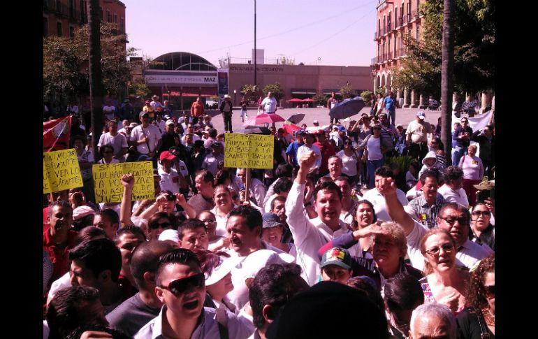 Jalisco | Piden aumento de 600 pesos directo al salario, con retroactivo al primero de enero Empleados de Zapopan se manifiestan; exigen mejores condiciones También solicitan que se aumente de mil 450 a mil 600 pesos sus vales de despensa, y dos días económicos más de los cuatro que tienen actualmente Por: EL INFORMADOR 20 de marzo de 2014 - 09:19 hs Entre los trabajadores hay gente de Coplademun, Obras Públicas, Padrón y Licencias, Parques y Jardines, Zoológico, entre otros. / ZAPOPAN, JALISCO (20/MAR/2014).- Entre 200 y 300 trabajadores del Sindicato de Servidores Públicos del Ayuntamiento de Zapopan se manifiestan hoy para exigir mejores condiciones laborales. Desde las 08:00 horas se dieron cita en las instalaciones de Calle 2, de donde salieron rumbo a la presidencia de Zapopan y llegaron minutos antes de las 10:00 horas. Nombraron al movimiento como “Marcha de la dignidad salarial”, y lo que piden es un incremento de 600 pesos directo al salario, con retroactivo al primero de enero. También solicitan que se aumente de mil 450 a mil 600 pesos sus vales de despensa, y dos días económicos más de los cuatro que tienen actualmente. El secretario de Organización del Sindicato, Pablo Camacho Madrigal, aseguró que las negociaciones con las autoridades se interrumpieron desde la semana pasada, por lo que decidieron hacer un paro laboral y marcha para “exigir sus derechos laborales”. “Son una serie de cosas: la falta de uniformes, herramientas, el mal estado de los vehículos de Aseo Público”. También solicitan un incentivo del 10% de incremento mensual en el salario, a los trabajadores que están expuestos a ciertos agentes infecciosos. Según el servidor público, se trata de tres mil trabajadores los que están en esta situación, por lo que se conformaron comisiones de cada área para acudir a solicitar ser escuchados por el alcalde, Héctor Robles Peiro. Entre los trabajadores hay gente de Coplademun, Obras Públicas, Padrón y Licencias, Parques y Jardines, Zoológico, Mantenimiento Vehicular, Aseo Público, que hoy no acudieron a laborar. “No están trabajando, cada quién ha decidido regalar un día laboral para la causa; desde que se agotó la negociación el viernes trabajamos bajo protesta, yo creo que la población tendrá conciencia, tiene qué entender porque estamos peleando una causa justa”. EL INFORMADOR / THAMARA VILLASEÑOR Temas Manifestaciones en Jalisco Ayuntamiento de Zapopan Municipios Héctor Robles Recibe las últimas noticias en tu e-mail Todo lo que necesitas saber para comenzar tu día Registrarse implica aceptar los Términos y Condiciones