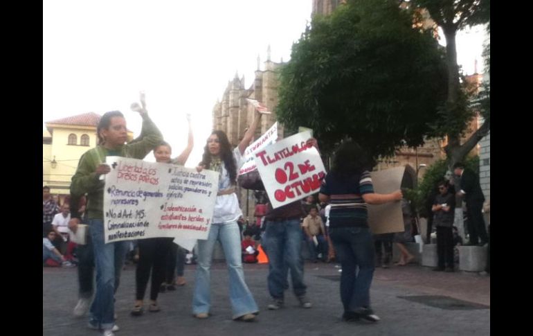 Jalisco | Alrededor de 300 personas llaman a la memoria histórica En Guadalajara recuerdan con marcha matanza en Tlatelolco Alrededor de 300 personas realizaron en la ciudad un recorrido con el lema 2 de octubre, ni se olvida ni se perdona Por: EL INFORMADOR 2 de octubre de 2012 - 21:37 hs En la marcha participaron diversos colectivos y organizaciones civiles. / GUADALAJARA, JALISCO (02/OCT/2012).- Bajo el lema "2 de octubre, ni se olvida ni se perdona", unas 300 personas (cifra de los organizadores) marcharon por calles de la ciudad, en recuerdo de la matanza de estudiantes en Tlatelolco, en 1968. Después del recorrido, realizaron un posicionamiento político y un festival cultural. Miembros de la sociedad civil y de colectivos como Frente Amplio de Jalisco, #Yosoy132, Todos Somos Pueblo, Partido Comunista de México y Colectivo del 68, partieron del jardín de La Normal y pasaron por el Centro Universitario de Ciencias Sociales y Humanidades, para luego avanzar sobre Avenida Alcalde, rumbo al Centro. Una vez en Juárez, bajaron por esa vialidad hacia su destino final: la Rambla Cataluña, situada al lado del Paraninfo de la Universidad de Guadalajara, donde se expusieron algunas consignas. Dentro de los discursos, el Frente Amplio de Jalisco llamó a la memoria histórica y rememoró la matanza de los estudiantes, incluso se habló de la reforma laboral que discuten los legisladores actualmente, refirió su integrante Manuel Mejía. Indicó que la convocatoria a la movilización, en la que se consignaran frases como "El 2 de octubre no se olvida" y "los universitarios contra el poder", fue a través de las redes sociales. Después de la marcha, en la Rambla Cataluña se proyectó la película en torno a la matanza del 68', Rojo amanecer, y #YoSoy132 realizó un performance que consistió en recordar, mediante audio, lo ocurrido en la Plaza de la Tres Culturas. Además, se colocó una "estela de los caídos", donde fueron colocados los nombres de quienes murieron aquel 2 de octubre de 1968, entre otras cosas actividades. Temas Manifestaciones en Jalisco Municipios Sociedad Lee También Esta es la historia del "Marigalante" el barco hundido en Puerto Vallarta No descartan episodios de lluvia dispersa este sábado en Guadalajara Policía de Zapopan realiza cinco detenciones en una semana Astros de Jalisco doblega a Xalapa y se pone a un juego de la Final de Zona Recibe las últimas noticias en tu e-mail Todo lo que necesitas saber para comenzar tu día Registrarse implica aceptar los Términos y Condiciones
