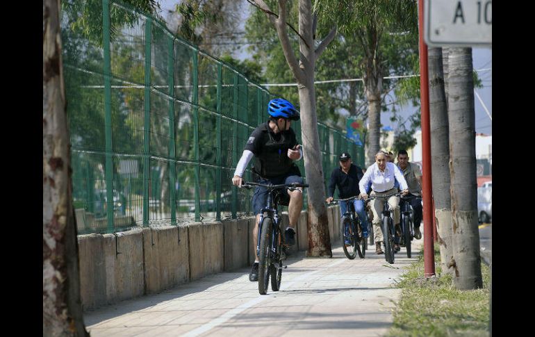 GUADALAJARA, JALISCO (07/AGO/2017).- Dos kilómetros de ciclovía están en operación de manera oficial a partir de esta mañana en Jesús Michel González (Prolongación 8 de Julio), de González Gallo a Prolongación Agua Amarilla. "Gestionamos los recursos desde hace un año cuando iniciamos la administración, nos llegan los recursos, son cuatro millones 990 mil pesos los que se están invirtiendo en dos kilómetros de ciclovía que los ciudadanos de esta área nos estaban pidiendo para hacer el entronque con Tlajomulco", explicó la alcaldesa de San Pedro Tlaquepaque, María Elena Limón García. La ruta ciclista es bidireccional, sin embargo, en un tramo de alrededor de 200 metros uno de los sentidos no está totalmente libre a la circulación, se construyó donde hay cuatro árboles en distintos puntos, para librarlos, es necesario introducirse al área de tránsito Norte-Sur de la nueva infraestructura. La vía ciclista favorecerá a alrededor de ocho mil habitantes de la zona, de acuerdo a la funcionaria.La infraestructura para la movilidad no motorizada se realizó con recursos federales, los 4.9 millones de pesos se destinaron a la ruta ciclista, iluminación y protecciones colocadas en la zona del canal. Vecinos de la zona señalan la invasión de la ciclovía por parte de motociclistas, al respecto Limón García mencionó que habilitaron a ciclopolicías que se encargarán de sancionar a conductores que no respeten el área destinada a la circulación de bicicletas. Habrá presencia de ese personal durante cuatro semanas para revisar que se respete la ruta para la bicicleta, "se levantarán sanciones a todos los que la usen indebidamente". La ciclovía es de 2.4 metros de ancho, 1.20 metros por sentido. EL INFORMADOR / LETICIA FONSECA