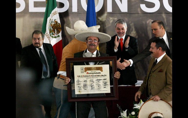 Jalisco | Declaran el 14 de septiembre como Día de la Charrería Jalisciense Entonan por primera ocasión el Himno de Jalisco Ayer se conmemoró el 187 Aniversario de la Declaración de Jalisco como Estado Libre Por: EL INFORMADOR 15 de septiembre de 2010 - 02:13 hs Zermeño Barba recibió un reconocimiento en representación de la Unión de Asociaciones de Charros del Estado de Jalisco. A. GARCÍA / GUADALAJARA, JALISCO (15/SEP/2010).- El presidente de la Mesa Directiva del Poder Legislativo, José Antonio de la Torre Bravo, entregó al gobernador Emilio González Márquez los símbolos del Estado “para que sean depositados en la Biblioteca Pública y en el Archivo Histórico de Jalisco”. Ayer se llevó a cabo una sesión solemne en el patio central del Instituto Cultural Cabañas, en la que se entonó por primera ocasión el Himno de Jalisco, cuya letra es de la inspiración del compositor Moisés Guerrero López. La música es creación de Felipe Vázquez. También se conmemoró el 187 Aniversario de la Declaración de Jalisco como Estado Libre, el 197 Aniversario de la Instalación del Congreso de Anáhuac y la Declaración de los Sentimientos de la Nación de Don José María Morelos y Pavón. Por otra parte, se declaró el 14 de septiembre como Día de la Charrería Jalisciense, entregándose un reconocimiento a Ricardo Zermeño Barba, en representación de la Unión de Asociaciones de Charros del Estado de Jalisco. Temas Congreso local Emilio González Charrería Lee También Cartucho Diputados responden a Lemus sobre diálogo por la Reforma Judicial Sociales: Che Eguiarte 40’s party Lemus, de la consulta al parlamento por el PJ Recibe las últimas noticias en tu e-mail Todo lo que necesitas saber para comenzar tu día Registrarse implica aceptar los Términos y Condiciones