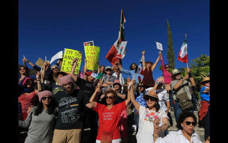 CHAPALA, JALISCO (21/ENE/2017).- Unos 800 estadounidenses se manifestaron la tarde de este sábado en la plaza pública de la delegación de Ajijic, en el municipio de Chapala, contra el actual presidente de Estados Unidos, Donald Trump.Según datos del Instituto Nacional de Migración (INM), en Ajijic, ubicado a orillas del lago de Chapala, hay alrededor de 4 mil residentes estadounidenses.Durante la manifestación los organizadores llamaron a mantener una resistencia ante los posibles cambios que implemente el gobierno de Trump para revertir “lo bueno” que han logrado gobiernos anteriores.“Todos necesitamos estar los siguientes cuatro años informados, activos y vigilantes. Aquí en Lakeside, estar en contacto con los grupos que están trabajando para mantenernos informados”, señala uno de los volantes que se repartieron durante la tarde.Además, convocaron a presionar a los funcionarios electos en los sitios de donde son originarios, pues consideran se olvidan de los estadounidenses que residen fuera del país.En la manifestación se brindó información sobre al menos 15 organizaciones que ya han iniciado “acciones de resistencia” en los Estados Unidos y se convocó a vincularse a ellas.