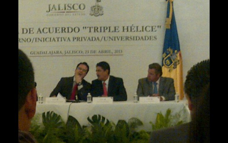 Jalisco | El objetivo es incrementar el potencial económico de Jalisco Firman acuerdo de colaboración entre Gobierno, empresas y universidades El objetivo del convenio entre el Gobierno del Estado, empresas y universidades incrementar el potencial económico de Jalisco Por: EL INFORMADOR 23 de abril de 2013 - 12:50 hs Aristóteles Sandoval confió en que este acuerdo pueda mostrar resultados económicos positivos. / GUADALAJARA, JALISCO (23/ABR/2013).- En la misma mesa coincidieron autoridades estatales, líderes de grupos empresariales y representantes universitarios. El motivo fue firmar en Casa Jalisco el acuerdo "Vinculación productiva triple hélice". En el encuentro oficial estuvieron el gobernador Aristóteles Sandoval; el alcalde de Guadalajara, Ramiro Hernández; el primer edil de Zapopan, Héctor Robles; el alcalde de Tonalá, Jorge Arana; el presidente municipal de Tlaquepaque, Alfredo Barba; el dirigente de la Coparmex, Óscar Benavides; el líder de la Cámara de Comercio de Guadalajara, Francisco Beckman; el rector de la Universidad de Guadalajara, Tonatiuh Bravo Padilla, así como líderes de otras universidades. José Palacios, secretario de Desarrollo Económico, expresó: "Este convenio abre la posibilidad de tener acciones encadenadas hacia un objetivo: el desarrollo productivo. El objetivo será establecer las bases de colaboración entre universidad, empresa y Gobierno a efecto de llevar a cabo acciones de apoyo, cooperación, intercambio de información en sus respectivas competencias y que contribuyan a la innovación, capacitación, crecimiento y desarrollo económico". El acuerdo signado por estas autoridades consigna compromisos para todos los implicados. Al Gobierno del Estado le corresponderá desarrollar proyectos que potencialicen el crecimiento del Estado, así como apoyar para la innovación y desarrollo económico. Los presidentes municipales deberán "apoyar proyectos viables en actividades económicas preponderantes", además de intercambiar información para la creación de proyectos. Los compromisos que adquirieron los empresarios es la creación de nuevos centros de emprendimiento e incubación; el apoyo a programas de investigación de prácticas profesionales y de servicio social, además de mejorar la competitividad de las empresas. En el caso de las universidades, les corresponderá promover el desarrollo científico y tecnológico; coordinarse con los empresarios para la creación de los centros de emprendimiento y enfocar la educación hacia el emprendurismo. Aristóteles Sandoval afirmó que este esquema permitirá que las acciones de Gobierno vayan de la mano con las necesidades de la planta productiva del Estado; así, dijo, habrá mejores resultados en las prácticas profesionales de los estudiantes y en su inserción al mercado laboral. Óscar Benavides, de Coparmex, celebró este acuerdo entre las tres partes y afirmó que viene a reforzar las actividades que el sector privado ya había emprendido con las universidades. EL INFORMADOR / ROBERTO MEDINA Temas Empresas del Estado de Jalisco Gobierno del Estado Aristóteles Sandoval Lee También Empresarios esperan alza en generación de empleo Cartucho Desapariciones: empatía abollada Adán 1, Claudia 0 Recibe las últimas noticias en tu e-mail Todo lo que necesitas saber para comenzar tu día Registrarse implica aceptar los Términos y Condiciones