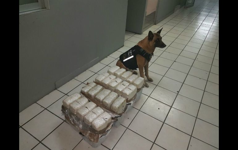 EL SALTO, JALISCO (23/SEP/2016).- Elementos de la Unidad Canina Especializada de la Fiscalía General del Estado encabezados por ''Killer'', uno de los canes certificados especializado en la detección de droga, armas y explosivos lograron un aseguramiento de 30 kilogramos de vegetal verde al parecer mariguana, dentro de una empresa de paquetería ubicada en el municipio de El Salto. El día de hoy, personal del escuadrón canino llevó a cabo una revisión al interior de una empresa de envíos, ubicada en la colonia Las Pintas de Arriba, en la zona del Parque Industrial El Salto, en donde fue localizada la droga. En el sitio, ''Killer'' detectó el enervante dentro de cuatro cajas de cartón con cinco paquetes tipo ladrillo de 1.5 kilogramos cada una, los cuales estaban envueltos en plástico.En las investigaciones se pudo saber que la droga tenía como destino la zona centro de Ciudad Reynosa, en el estado de Tamaulipas.Ante esto, la mariguana fue asegurada y puesta a disposición del Ministerio Público Federal quien se encargará de abrir una carpeta de investigación.