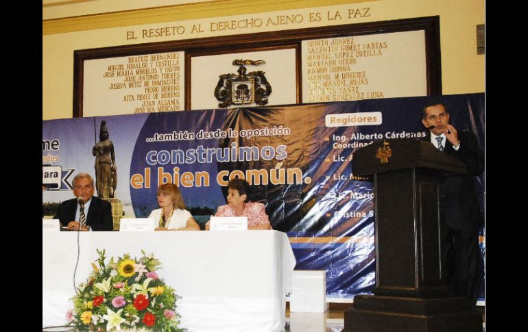 Jalisco | Sus cinco integrantes hicieron hincapié en que seguirán siendo una oposición firme Fracción panista de Guadalajara rinde su informe Sus cinco integrantes hicieron hincapié en que han sido y seguirán siendo una oposición firme Por: EL INFORMADOR 29 de abril de 2013 - 20:49 hs Cada uno de los integrantes de la fracción panista habló de los trabajos que ha realizado desde las comisiones edilicias que preside. / GUADALAJARA, JALISCO (29/ABR/2013).- La fracción edilicia del PAN en el Ayuntamiento de Guadalajara rindió un informe de actividades que comprendió el periodo de octubre de 2012, cuando comenzó la administración, hasta hoy en día, y en el que sus cinco integrantes hicieron hincapié en que han sido y seguirán siendo una “oposición firme”, pero que colaborará cuando esté de por medio la ciudad. Al evento celebrado en el Salón de Sesiones del Palacio Municipal de Guadalajara acudieron Miguel Ángel Monraz Ibarra, presidente del Comité Directivo Estatal del PAN en Jalisco; el coordinador de la bancada panista en el Congreso estatal, Gildardo Guerrero; el ex candidato a la gubernatura de Jalisco, Fernando Guzmán Pérez Peláez, entre otros. Cada uno de los integrantes de la fracción panista habló de los trabajos que ha realizado desde las comisiones edilicias que preside o de las que forma parte, así, por ejemplo, María Isabel Alfeirán habló del “Proyecto 2012”, una estrategia que integra asociaciones civiles para combatir la prostitución y la obesidad infantil; mientras que Cristina Solórzano profundizó en el tema de la seguridad pública, y su preocupación –dijo- por dignificar la labor policial y aumentar su presencia en las colonias. Alejandro Elizondo Gómez reparó en los trabajos de la Comisión de Obras Públicas que preside, como la revisión de los proyectos de pavimentación que ha hecho desde ahí. Mario Salazar Madera, por su parte, habló de casos en los que han intervenido como el del motel que se edifica en la colonia San Miguel de Mezquitán, que contraviene el plan parcial de desarrollo urbano vigente y en los que acompaña a los vecinos para combatirlo legalmente; la queja que presentaron ante el Instituto de Transparencia e Información Pública por las deficiencias en esta materia detectadas en el portal del Ayuntamiento tapatío, y la denuncia por el desvío de las aportaciones de los servidores públicos para el sistema de pensiones. Finalmente, el coordinador de la fracción edilicia, Alberto Cárdenas Jiménez, destacó proyectos como el de “Voltea a la Barranca”, y el de Ciudad Creativa Digital, para los que lograron partidas presupuestales iniciales en este 2013, y el posicionamiento que hicieron para apoyar el proyecto de la Presa El Zapotillo con una cortina de 105 metros de altura. Hacia el PRI se refirió como un partido “viejo y mañoso”, y al cual “le hace daño todo el poder y nos toca acotarlo, atarle las manos, cortar intensiones perversas, cuidar los flujos de dineros y destino de todos los programas, con el fin de transitar por el camino correcto en esta etapa compleja”. El informe de los panistas * Reajuste presupuestal y cláusulas de control sobre 100 MDP * Presupuesto a “Voltea a la Barranca” por 15 MDP para detonar una inversión de los primeros 300 MDP en los próximos meses. * Relanzamiento del Bosque Los Colomos con 5 MDP que servirán para detonar de 75 a 80 MDP. * Partida inicial para la Ciudad Creativa Digital por 20 MDP Numeralia panista * Atención Ciudadana: 895 * Sesiones, reuniones y/o mesas de trabajo: 429 * Iniciativas presentadas: 28 * Propuestas al Plan Municipal de Desarrollo: 57 Labores en sesiones * Ordinarias del pleno del Ayuntamiento: 11 * Extraordinarias del pleno del Ayuntamiento: 08 * Solemnes del pleno del Ayuntamiento: 09 * Comisiones Edilicias 219 EL INFORMADOR / LUIS HERRERA Temas Ayuntamiento de Guadalajara Municipios PAN Jalisco Recibe las últimas noticias en tu e-mail Todo lo que necesitas saber para comenzar tu día Registrarse implica aceptar los Términos y Condiciones