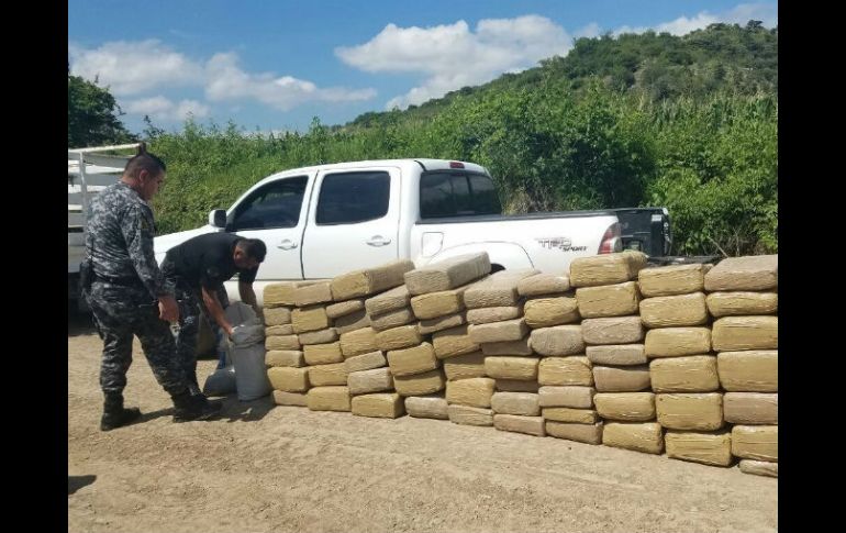MAGDALENA, JALISCO (19/SEP/2016).- Elementos de la Fuerza Única, realizaron el decomiso de casi una tonelada de vegetal verde con las características de la mariguana, así como armas largas, cartuchos y cargadores, dentro de dos camionetas abandonadas en el municipio de Magdalena, durante el operativo no se detuvo a personas relacionadas con los hechos. El operativo se ejecutó sobre el camino a El Moloya, cerca del poblado La Mazata, en el municipio de Magdalena, en donde personal de la Fiscalía General del Estado, localizó abandonada una camioneta Ford F350, Súper Duty de redilas color blanco, sin placas de circulación en la que fueron localizados 74 paquetes confeccionados en forma de "ladrillo" y con cinta canela, conteniendo en su interior vegetal verde y seco con las características de la mariguana, dando un peso de 950 kilogramos, además de 35 kilos 500 gramos de semilla del mismo enervante. En el sitio, también fue localizada una camioneta Toyota Tacoma en color blanco, con placas del Estado de Jalisco, en donde se localizó el siguiente armamento: •Arma larga G3, número de serie A124440, •Arma larga AK47, número de serie 1607466. •Arma larga AK47, número de serie 305655. •Arma larga AK47, con la leyenda Sporter BWK92 •210 cartuchos calibre 7.62x39 •Así como cuatro chalecos tácticos.