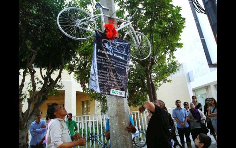 Jalisco | Colocan bicicleta blanca 25, en vialidad donde falleció ciclista el sábado Grupos ciclistas urgen a sacar del cajón Plan de Movilidad no Motorizada Colocan bicicleta blanca 25, en vialidad donde falleció ciclista el sábado Por: EL INFORMADOR 23 de octubre de 2012 - 19:18 hs Hoy en López Cotilla, casi esquina con Américas fue colocada una biblicleta blanca en honor a Jesús García de 24 años de edad. / GUADALAJARA, JALISCO (23/OCT/2012).- Grupos ciclistas urgen a las autoridades sacar del cajón el Plan Maestro de Movilidad no Motorizada, al conmemorar con "Un pequeño y sombrío memorial a los ciclistas que son asesinados por un vehículo automotor", tal y como se lee en el texto que acompaña a la bicicleta blanca colocada esta tarde en López Cotilla, casi esquina con Américas, en recuerdo de un joven ciclista que dejó de pedalear para siempre el pasado sábado. Tres ofrendas florales, dos amarradas al poste cerca de la bicicleta y una en el piso, quedaron en el lugar de la tragedia en la que perdió la vida al viajar en su velocípedo Jesús García Espinoza, de 24 años, en un percance en el que intervino una unidad del transporte público. ¡Ni una bicicleta blanca más! Es la demanda de grupos ciclistas, quienes dan cuenta de 25 decesos de personas que utilizan el velocípedo durante este 2012, conforme a sus registros. La lista es mayor; desde hace tres años dos meses que llevan el conteo de estos percances: suman 97 los fallecidos. Entre las demandas de las organizaciones ciudadanas que promueven la movilidad no motorizada, está que en las normas viales se establezca el velocípedo como un medio de transporte y no sea considerado solamente recreativo. "Desde GDL en Bici y Bicicleta Blanca le apostamos a la cultura vial, tema al cual el gobierno no se ha subido. Instamos a que el nuevo gobierno se promulgue a favor del peatón, de los derechos de los peatones -ciclistas y se haga menos infraestructura para el automóvil", manifestó Felipe Madrigal, integrante del movimiento Bicicleta Blanca. Por su parte, Yeriel Salcedo, integrante de GDL en Bici, subrayó: "Ya no más muertos en la calle, ni ciclistas, ni peatones, ni automovilistas ni ejecuciones de choferes. Simplemente, llevemos la vida en paz; respetémonos". Durante la colocación de la Bicicleta Blanca número 25 de este año, además de integrantes de organizaciones ciudadanas, acudió una decena de amigos del joven ciclista fallecido. Algunas recomendaciones que emiten GDL en Bici y e Movimiento Bicicleta Blanca, para promover una convivencia segura en las calles, son: -Respetar las velocidades máximas establecidas en el Reglamente de Vialidad, Tránsito y Transporte del Estado de Jalisco. -Considerar al ciclista como un vehículo más en la calle. -Al rebasar, conservar una distancia entre el auto y el ciclista de 1.5 metros. -Que los choferes del transporte público cumplan de manera obligatoria los cursos de capacitación y sensibilización en materia de educación vial. -Otras medidas que ponen a consideración de la autoridad: -Reformar la Ley de los Servicios de Vialidad, Tránsito y Transporte del Estado de Jalisco y su reglamento para incorporar las obligaciones y derechos de ciclistas. -Aplicar una estrategia de cultura vial con los operadores del transporte público. -Diseñar y aplicar programas de educación vial para los peatones, ciclistas y choferes de autos particulares. EL INFORMADOR / LETICIA FONSECA Temas Municipios Movilidad urbana Sociedad Recibe las últimas noticias en tu e-mail Todo lo que necesitas saber para comenzar tu día Registrarse implica aceptar los Términos y Condiciones