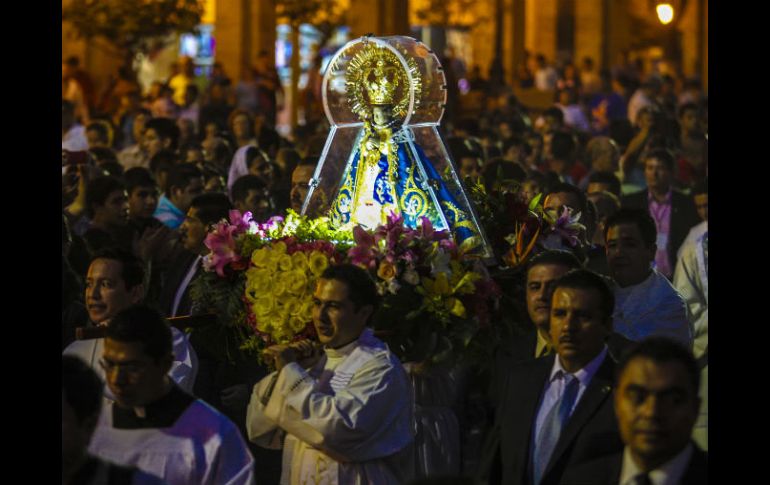 Jalisco | Miles acuden a la Catedral Metropolitana para recibir a la Virgen de Zapopan Guadalajara da la bienvenida a 'La Generala' con fervor y fe Miles de personas acuden a la Catedral Metropolitana para recibir a la Virgen de Zapopan, visita con la que concluye su peregrinar por templos en este 2014 Por: EL INFORMADOR 12 de octubre de 2014 - 03:07 hs Después de una misa en la explanada del Instituto Cultural Cabañas, comenzó la pregrinación hacia la Catedral Metropolitana. EL INFORMADOR / F. Atilano GUADALAJARA, JALISCO (12/OCT/2014).- Movidos por el fervor, la devoción y la fe, miles de fieles se dieron cita ayer en el Centro Histórico de Guadalajara para dar la bienvenida a la Virgen de Zapopan, que arribó por la tarde a la Catedral Metropolitana poniendo fin a su peregrinar por templos y parroquias este año. Posteriormente, la explanada del Instituto Cultural Cabañas se convirtió durante un par de horas en un altar provisional para recibir a “La Generala”, con una multitudinaria Misa de Patrocinio en donde el sacerdote celebrante mencionó que los feligreses no se deben acostumbrar a situaciones actuales como los secuestros, extorsiones, abortos, asesinatos y más, pues dijo que por más oscuro que parezca el panorama, debe prevalecer la fe. Con este mensaje, los fieles iniciaron su andar en el Centro de Guadalajara previo a acompañar a la Virgen de Zapopan en la misa de hoy a las 05:00 horas en la Catedral, para posteriormente salir a las 06:30 horas hacia la Basílica, en cuyo recorrido se esperan más de dos millones de personas. El escenario de la llegada de la Zapopana al Centro tapatío estuvo enmarcado, además, por los puestos ambulantes que inundaron las principales plazas, así como por el caos vial que se generó por las restricciones a la circulación que se implementaron para la celebración religiosa y las obras que se realizan en calles del primer cuadro. Para vigilar que el evento transcurra en completo orden, entre ayer y hoy cuatro mil funcionarios de los ayuntamientos de Guadalajara y Zapopan, así como elementos de seguridad pública y bomberos del Estado, participan en el operativo por la Romería 2014. Entre las recomendaciones para el recorrido final de la Virgen de Zapopan hoy rumbo a su Basílica están mantenerse hidratado, no llevar objetos de valor y que adultos mayores y niños porten gafete de identificación. Temas Guadalajara Catedral Municipios Virgen de Zapopan Romería 2014 Lee También Bajan lluvias el sábado en Guadalajara, pero se mantiene nublado Detienen a hombre señalado por abusar sexualmente de su hija Madrugan para asegurar lugar en concierto de Caifanes en Fiestas de Octubre Cinépolis tendrá menú especial por el reestreno de "Volver al futuro" Recibe las últimas noticias en tu e-mail Todo lo que necesitas saber para comenzar tu día Registrarse implica aceptar los Términos y Condiciones