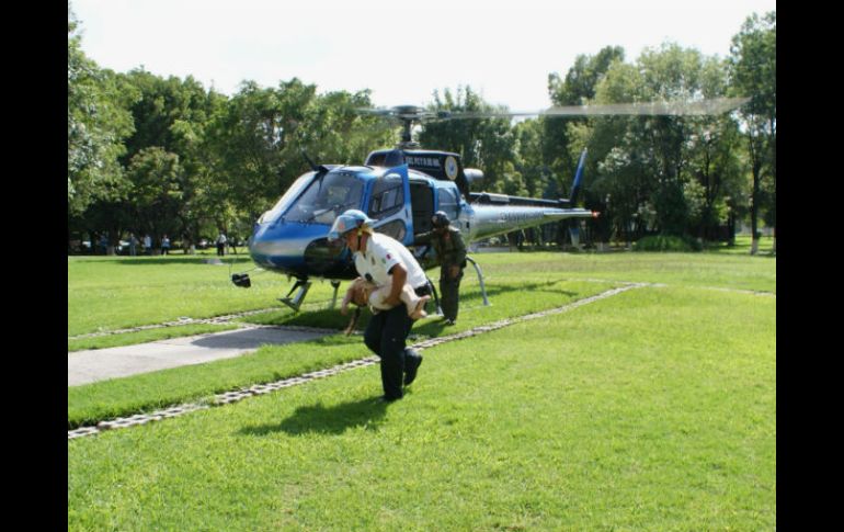Jalisco | Una niña de tres años de edad fue trasladada al Centro Médico Nacional de Occidente Helicóptero Zeus traslada a menor picada por alacrán Una niña de tres años de edad fue trasladada al Centro Médico Nacional de Occidente Por: EL INFORMADOR 23 de julio de 2012 - 16:35 hs La menor cuando es bajada del helicóptero. ESPECIAL / TEQUILA, JALISCO (23/JUL/2012).- La niña Kimberley Yanilet, de tres años de edad, quien sufrió la picadura de un alacrán en la comunidad del Rancho El Plan, municipio de Tequila, fue trasladada en el helicóptero Zeus de la Secretaría de Seguridad Ciudadana de Guadalajara al Centro Médico Nacional de Occidente (CMNO), específicamente al área de Urgencias de Pediatría. La mamá de la pequeña, Socorro Valdez, de 43 años, notó que su hija se quejaba, y al revisar alrededor de ella avistó el alacrán y, tras matarlo, solicitó ayuda para el traslado a un puesto de socorro, por el estado de salud en el que se encontraba la niña. De inmediato se solicitó el apoyo al Centro de Comunicaciones y Observación Electrónica, en donde el capitán, José de Jesús Sánchez Ballesteros, dio la orden para que el helicóptero Zeus realizara el traslado. Al arribo al CMNO, la niña fue recibida por Óscar Rodolfo Zamarripa, así como personal médico con el equipo necesario para brindarle las atenciones que restablecieran su salud. El estado de salud de Kimberley es considerado como estable. Temas Seguridad Niños CMNO Lee También Elementos de seguridad detienen a traficante Suizo en Cancún Detienen a asesino de joven en partido de futbol Tras persecución policial, localizan 70 kilos de marihuana en Tuxpan Unicef revela cifras de la obesidad infantil en México Recibe las últimas noticias en tu e-mail Todo lo que necesitas saber para comenzar tu día Registrarse implica aceptar los Términos y Condiciones