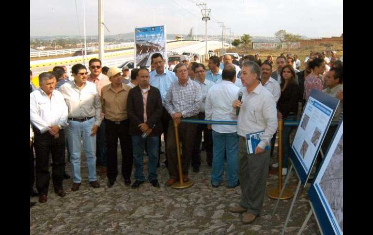 Jalisco | La obra tiene una longitud total de 490 metros y una altura de 5.95 metros Inauguran Nodo Vial en la Carretera libre a Zapotlanejo y Periférico Este proyecto ayudará a dar más fluidez al tránsito vehicular de la zona, el cual asciende a 20 mil vehículos Por: EL INFORMADOR 16 de junio de 2010 - 16:50 hs González Márquez aprovechó el evento para proponer a los munícipes sustituir el pavimento asfáltico por concreto hidráulico. ESPECIAL. / GUADALAJARA, JALISCO (16/JUNIO/2010).- Este día quedo formalmente abierto a la circulación el Nodo Vial de la Carretera libre a Zapotlanejo y Periférico Oriente, que ayudará a dar más fluidez a los 20 mil vehículos que circulan por esta artería. El Gobernador del Estado, Emilio González Márquez, supervisó la apertura de este paso elevado que forma parte del Plan Integral de Movilidad. La obra tiene una longitud total de 490 metros y una altura de 5.95 metros; tuvo una inversión de 70 millones de pesos. El mandatario resaltó que esta obra forma parte de la conclusión del anillo periférico. Agregó que está satisfecho por el avance de obras que cumplen con los planes de movilidad urbana. “Este proyecto consiste en consolidar como vías de flujo continuo, sin semáforos las arterias principales de la Zona Metropolitana de Guadalajara, correspondientes a las avenidas López Mateos, Lázaro Cárdenas y el Anillo Periférico”. González Márquez señaló que estas obras dan cumplimiento al Plan Estatal de Desarrollo, en particular al proyecto de movilidad, del cual ya tenían conocimiento los presidentes municipales desde octubre de 2009. Además aprovechó para plantear una alternativa al problema de baches que existe en las calles de la Zona Metropolitana de Guadalajara, ya que los ayuntamientos y el Estado no cuentan con el dinero suficiente y el temporal de lluvias ya empezó. En el evento se dieron cita el Presidente de la Cámara Mexicana de la Industria de la Construcción, Gustavo Arballo; el Secretario de Desarrollo Urbano, Sergio Carmona Ruvalcaba; el presidente municipal de Tonalá, Antonio Mateos Nuño; de Tlajomulco, Enrique Alfaro Ramírez, y de Tlaquepaque, Miguel Castro Reynoso, entre otros invitados. Temas Vialidad Emilio González Movilidad urbana Obras en Periférico Lee También Sociales: Che Eguiarte 40’s party Cierres viales por la Romería 2025 comienzan este jueves Sociales: Domingo en los toros, concluye la primera parte de la Temporada Grande 2025 Aliados UNIVA fortalece lazos en la educación Recibe las últimas noticias en tu e-mail Todo lo que necesitas saber para comenzar tu día Registrarse implica aceptar los Términos y Condiciones