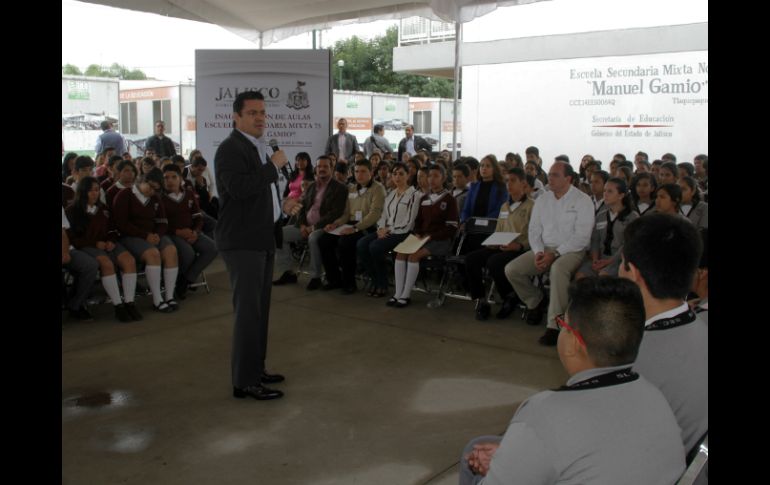 Jalisco | Estos salones beneficiarán a mil 629 alumnos de dos planteles Inauguran diez aulas escolares en Tlaquepaque Los salones fueron equipados con 870 piezas y beneficiarán a mil 629 alumnos de los dos planteles Por: EL INFORMADOR 24 de junio de 2015 - 15:33 hs Aristóteles Sandoval destaca que su gobierno está comprometido en formar estudiantes competitivos. ESPECIAL / Ayuntamiento de Tlaquepaque TLAQUEPAQUE, JALISCO (24/JUN/2015).- En compañía del alcalde Ernesto Meza Tejeda y alumnos de dos planteles educativos, el gobernador de Jalisco, Aristóteles Sandoval inauguró 10 aulas escolares en dos escuelas de Tlaquepaque. La construcción de los espacios fue posible gracias a una inversión de cinco millones 269 mil 338 pesos por parte del Instituto de la Infraestructura Física Educativa del Estado de Jalisco (INFEJAL) y a las gestiones realizadas por parte del Ayuntamiento de San Pedro Tlaquepaque. Estos salones fueron equipados con 870 piezas, entre butacas, mesas para maestros y otros implementos adquiridos con una cantidad de 686 mil 864 pesos, lo que beneficiará a mil 629 alumnos de los planteles Escuela Secundaria Técnica Número 27 “María Dolores Hernández Cueva” y la Escuela Secundaria Mixta 75, “Manuel Gamio”. Sandoval Díaz destacó que su gobierno está comprometido en formar estudiantes competitivos, “queremos estudiantes que puedan competir con cualquiera del mundo, que puedan aprender como en cualquier parte del mundo para que el día de mañana puedan ser competitivos y puedan alcanzar sus sueños”. Por ello en la escuela “Manuel Gamio” de Parques de Santa María donde ahora los alumnos cuentan con seis aulas más se comprometió a brindarles aulas interactivas para el próximo ciclo escolar, mientras que en el plantel “María Dolores Hernández Cueva” de Santa Anita con cuatro salones nuevos, anunció que su equipo trabaja para brindar Internet gratuito en las secundarias, lo que vendría a ser una herramienta más para su formación académica. Temas Educación Educación local Ayuntamiento de Tlaquepaque Aristóteles Sandoval Lee También Clima en Tlaquepaque hoy: el pronóstico para el sábado 11 de octubre de 2025 Escuela Gómez de Mendiola celebra sus primeros 75 años al servicio de los tapatíos Beca Rita Cetina: ¿Quiénes reciben su pago HOY viernes 10 de octubre? Esta columna trata sobre Omar Bravo (y no) Recibe las últimas noticias en tu e-mail Todo lo que necesitas saber para comenzar tu día Registrarse implica aceptar los Términos y Condiciones