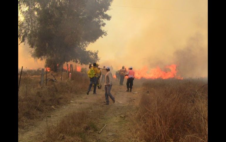 Jalisco | No hay lesionados Incendio consume 30 hectáreas de pastizales y arbustos en zona de El Bajío Tras la conflagración tuvieron que evacuar dos escuelas privadas Por: EL INFORMADOR 26 de enero de 2011 - 06:00 hs Las autoridades presumen que el incendio pudo haber sido provocado, ya que localizaron llantas prendidas. M. PATIÑO / ZAPOPAN, JALISCO (26/ENE/2011).- Un incendio que devoró al menos una treintena de hectáreas de pastizal en la zona conocida como el Bajío, en Zapopan, provocó la movilización de decenas de bomberos. La conflagración inició minutos después de las 17:00 horas de ayer, y para ingresar a la zona del siniestro se tuvo que ingresar por la Avenida del Bajío, avanzar hasta el fondo, y después de tres kilómetros de terracería, caminar para llegar hasta los pastizales que estaban ardiendo en llamas. Víctor Rascón Pérez, director de Servicios Ambientales de la Secretaría de Desarrollo Rural (Seder), indicó que la conflagración “pudo haber sido provocada, debido a que dentro de los pastizales y arbustos se encontraban algunas llantas y basura prendidas”. Agregó que el incendio no devastó ninguna zona forestal. Para controlar la conflagración, misma que pudo ser vista en toda la ciudad, a través de las grandes nubes de humo blanco, se necesitó de la participación de casi un centenar de elementos de la Secretaría de Desarrollo Rural, Conafor, del Grupo Linces del bosque de La Primavera, Bomberos y Brigadas Forestales de Zapopan, y 12 pipas y motobombas. Elementos que participaron para sofocar el incendio - 27 elementos de la Secretaría de Desarrollo Rural (Seder). - 18 efectivos de la Comisión Nacional Forestal (Conafor). - Seis integrantes del Grupo Linces del Bosque de La Primavera. - 25 elementos de Protección Civil y Bomberos de Zapopan. - 15 efectivos de las Brigadas Forestales de Zapopan. - Nueve pipas con 20 mil litros de agua, cada una. - Tres motobombas. Temas Seguridad Incendios Forestales Secretaría de Desarrollo Rural Jalisco Bomberos de Zapopan Recibe las últimas noticias en tu e-mail Todo lo que necesitas saber para comenzar tu día Registrarse implica aceptar los Términos y Condiciones