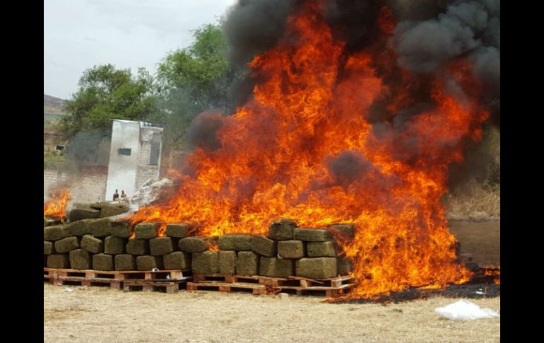 Jalisco | La PGR destruye amapola, cocaína, mariguana, mescalina y metanfetamina Incineran más de cuatro toneladas de drogas en El Salto La PGR destruye amapola, cocaína, mariguana, mescalina y metanfetamina Por: EL INFORMADOR 23 de abril de 2016 - 15:58 hs Además, se quemaron 18 kilos de semilla de mariguana, seis unidades de metilfenidato, 14 plantas de amapola y psicotrópicos. ESPECIAL / GUADALAJARA, JALISCO (23/ABR/2016).- En un predio en El Salto, la delegación Jalisco de la Procuraduría General de la República (PGR) incineró más de cuatro toneladas de estupefacientes que fueron asegurados en distintos operativos implementados por autoridades de seguridad de los tres niveles de Gobierno. La incineración logró destruir 132 gramos de amapola, cinco kilos de cocaína, más de tres toneladas de mariguana, 88 gramos de mescalina así como otra tonelada más de metanfetamina. Además, se quemaron 18 kilos de semilla de mariguana, seis unidades de metilfenidato, 14 plantas de amapola y 261 de mariguana, dos mil 550 psicotrópicos, 17 unidades de sustancias negativas, 11 litros de metanfetamina líquida y tres mililitros de sustancias psicotrópicas. La Agencia de Investigación Criminal, un representante del Órgano Interno de Control de la PGR y elementos de Protección Civil y Bomberos de El Salto verificaron que el procedimiento se llevara a cabo bajo las normativas establecidas. Temas Seguridad PGR Drogas El Salto Lee También Detienen a hombre tras persecución en Tlaquepaque Localizan cuerpo en Tlaquepaque Vinculan a mujer que explotaba sexualmente a su hija en Tlajomulco Detienen a sujeto por robo de motocicleta en Valle Real Recibe las últimas noticias en tu e-mail Todo lo que necesitas saber para comenzar tu día Registrarse implica aceptar los Términos y Condiciones