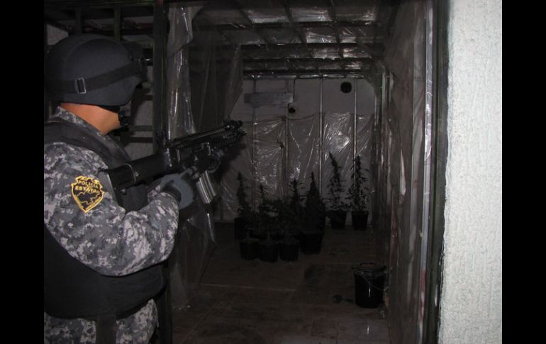 Jalisco | La Fuerza Única Metropolitana asegura la finca que era usada para cultivar la droga Invernadero de mariguana dentro de residencia en Chapalita Una vivienda acondicionada para cultivar y cosechar el enervante fue asegurada por la Fuerza Única Metropolitana Por: EL INFORMADOR 22 de enero de 2014 - 23:16 hs La finca había sido acondicionada con sistemas de riego y clima artificial para el cultivo de mariguana. / GUADALAJARA, JALISCO (23/ENE/2014).- Una residencia acondicionada como tremendo invernadero de mariguana fue descubierta la noche de este miércoles en plena colonia Chapalita, en Zapopan. En el lugar se sembraba y cosechaba el enervante cultivado en macetas, clasificadas según su nombre de venta al público. En algún momento entre las 18:00 y 20:00 horas, las autoridades recibieron un reporte anónimo que alertaba de personas que introducían plantas y equipo diverso en el 5139 de la calle Primera Sur, entre Arquitectos e Ingenieros Sur, en la citada colonia. Al llegar al inmueble --una residencia de aproximadamente 10 metros de frente por 30 de fondo con tres niveles--, policías de la Fuerza Única Metropolitana pudieron ver que en la cochera había algunas macetas con plantas de mariguana, según aseguró César Gómez, comisario de la corporación. Los gendarmes ingresaron al lugar donde no había ya absolutamente nadie, sólo unas 65 macetas con plantas de todos tamaños y clases, según etiquetas colocadas al parecer por quienes las cultivaban en las macetas: había "Panamá", "Tangerine Dream", "Black Ice", "Sour Diesel", "Armageddon Moon" y "Critical Mass", entre otras. El inmueble había sido acondicionado en unas cinco habitaciones con sistemas de invernadero, de riego y con clima artificial; había estantes con fertilizantes y al parecer se equipaba con más tecnología para ampliar los espacios de cultivo. Una inscripción en una tapa de fusibles daba cuenta de que al menos operaban hace un año en ese inmueble sin que los vecinos sospecharan, recién hasta este miércoles: "Ojo. No apagar aire acondicionado. No apagar luces del lado izquierdo. Nomás Apagar luces derecha. 4/1/13". Gómez informó que los vecinos no dieron mayores detalles sobre las personas que se supone estaban dentro de la residencia y que dieron origen a la denuncia: "Se le va a dar vista al Ministerio Público para que inicie con las indagatorias correspondientes". Mapa de ubicación del invernadero de mariguana (Si no se despliega correctamente CLIC AQUÍ) Temas Seguridad Drogas Mariguana Fuerza Única Jalisco Lee También Policía de Zapopan realiza cinco detenciones en una semana Astros de Jalisco doblega a Xalapa y se pone a un juego de la Final de Zona Escuela Gómez de Mendiola celebra sus primeros 75 años al servicio de los tapatíos Proyectan expansión de Placencia Muebles Recibe las últimas noticias en tu e-mail Todo lo que necesitas saber para comenzar tu día Registrarse implica aceptar los Términos y Condiciones