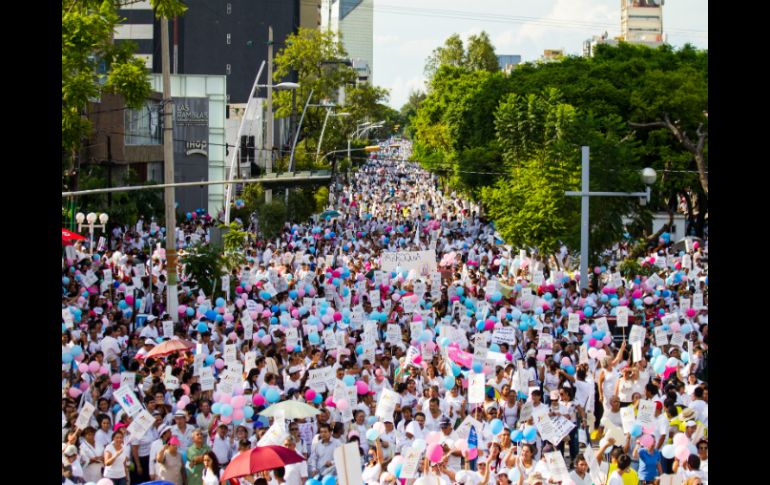 Jalisco | Miles de personas gritaban consignas a favor de la familia tradicional Jaliscienses marchan a favor de la familia Miles de personas gritaban consignas a favor de la familia tradicional Por: EL INFORMADOR 25 de julio de 2015 - 16:24 hs GUADALAJARA, JALISCO (25/JUL/2015).- Miles de personas marcharon a favor de la familia en Guadalajara la tarde de este sábado. La manifestación, organizada por la asociación civil "Jalisco es uno por los niños", partió de la Minerva hasta la Glorieta de los niños héroes para exigir que no se modifique el Código Civil de Jalisco y no se permitan las uniones entre personas del mismo sexo. "Pedimos que la familia sea tutelada desde las leyes y no redefinida, sino al contrario, debe ser protegida por el Estado", señaló Brenda Del Río, voluntaria y vocera de la organización La activista precisó que participaron contingentes de varios municipios del interior del Estado como de San Ignacio Cerro Gordo, Arandas, Zacatic y Tepatitlán. Explicó que la marcha en Guadalajara es parte de un movimiento que se replicará en 25 ciudades de todo el país. Durante la marcha, los asistentes, que según los organizadores fueron más de 80 mil, vestidos de blanco entonaron consignas para apoyar los matrimonios entre un hombre y una mujer como "Queremos niños con papá y mamá" y "Familia unida, jamás será vencida". Además, llevaban globos rosas y verdes, simbolizando a los niños y a las niñas. A su paso, brigadistas con chalecos verdes recogían la basura y controlaban el flujo de la marcha para permitirles cruzar a algunos carros. Entonaban también canciones religiosas. Brenda condenó la resolución de la Suprema Corte de Justicia de la Nación (SCJN) que declaró inconstitucionales los códigos civiles que definían al matrimonio como la unión entre un hombre y una mujer. "Una sola Sala lo resolvió, sólo cuatro magistrados decidieron por 120 millones de personas y a puerta cerrada", señaló Del Río. "Queremos que se le dé marcha atrás a este atropello porque no les corresponde y va más allá de sus funciones ir en contra de lo que la naturaleza otorga". La activista precisó que también piden que se respeta la patria potestad de los padres de familia, la cual consideran que se ve amenazada con la Ley General de los Derechos de los Niños, Niñas y Adolescentes. "Somos mayoría en la sociedad. La familia sí importa, lo natural no es legislable", finalizó . EL INFORMADOR / VIRGINIA ARENAS Temas Manifestaciones en Jalisco Municipios Matrimonio homosexual Homosexualidad Lee También Astros de Jalisco doblega a Xalapa y se pone a un juego de la Final de Zona Escuela Gómez de Mendiola celebra sus primeros 75 años al servicio de los tapatíos Proyectan expansión de Placencia Muebles Omar 'N' es vinculado a proceso por presunto abuso sexual infantil agravado Recibe las últimas noticias en tu e-mail Todo lo que necesitas saber para comenzar tu día Registrarse implica aceptar los Términos y Condiciones