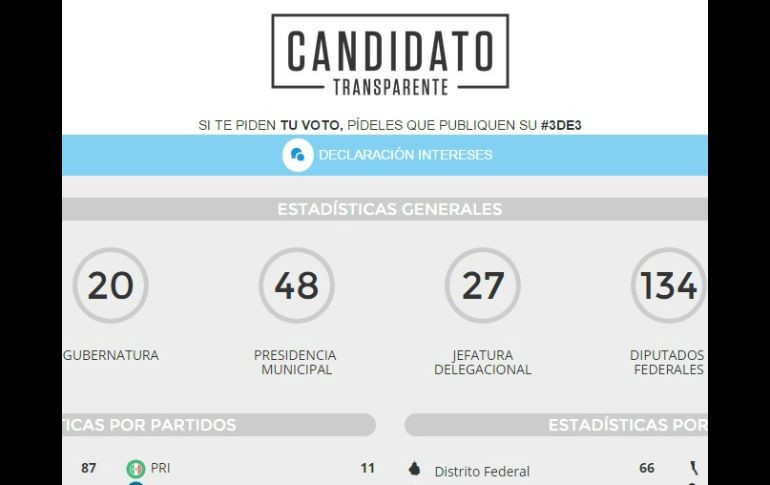 Jalisco | Aunque por otro lado, apenas 28 de 700 cumplieron con su #3de3 Jalisco, segundo lugar con candidatos transparentes La plataforma registra 28 aspirantes a un puesto de elección popular que compartieron sus declaraciones: patrimonial, de intereses y fiscal Por: EL INFORMADOR 24 de mayo de 2015 - 13:12 hs En Jalisco, PAN, MC y PRI-PVEM fueron los más transparentes. ESPECIAL / candidatotransparente.mx GUADALAJARA, JALISCO (24/MAY/2015).- Aquí hay dos miradas de una misma noticia: Jalisco ocupa el segundo lugar entre los estados cuyos candidatos a elección popular publicaron sus declaraciones patrimonial, de intereses y fiscal. Sin embargo, la otra mirada de esta misma noticia es que apenas 28 candidatos de un global de casi 700 puestos cumplieron con su #3de3, de cara al proceso electoral del próximo 7 de junio. Lo anterior se desprende de la estadística de la plataforma Candidato transparente #3de3, una iniciativa de Transparencia Mexicana y el Instituto Mexicano para la Competitividad, que busca conocer el estatus de cada candidato, para saber con cuántos recursos económicos llegan al puesto y con cuánto saldrá una vez que concluya la gestión pública. Esto permitiría que los ciudadanos comprendieran o vislumbraran presuntos actos de corrupción. La estadística indica que Jalisco tiene 28 candidatos transparentes, donde 13 son aspirantes a diputados y 15 quieren ser alcaldes de algún municipio. El primer lugar de la lista es el Distrito Federal, con 66 candidatos transparentes: 39 candidatos a diputados y 27 a jefes delegacionales. Después de Jalisco está Michoacán y Coahuila con 13 y 11 candidatos transparentes, respectivamente. En Jalisco, los partidos Acción Nacional, Movimiento Ciudadano y la alianza del Revolucionario Institucional y Verde Ecologista fueron los más transparentes, al presentar cuatro candidatos a presidencias municipales cada uno. Encuentro Social, PRD y Morena sólo presentaron un candidato. En el terreno de los candidatos que compiten por una curul, Movimiento Ciudadano presentó más candidaturas transparentes, con siete: tres que buscan un espacio en San Lázaro y cuatro que quieren ser diputados locales. A estos se añaden dos de Morena, uno del PRI, uno de Encuentro Social y un candidato independiente ( Pedro Kumamoto Aguilar). Sin embargo, ningún candidato plurinominal de cualquier partido presentó sus declaraciones de intereses, patrimonial y fiscal. A pesar de que se debía cumplir con un criterio estandarizado de llenado de documentación, durante el proceso electoral se demostró inconsistencias en dichas declaraciones. Por ejemplo, el pago de impuestos, los ingresos y terrenos no reportados por candidatos, que posteriormente se descubrió que sí eran bienes no reportados. Tampoco cumplen al IEPC A mitad del proceso electoral, el Instituto Electoral y de Participación Ciudadana habilitó una plataforma electrónica donde daba a conocer quiénes eran los candidatos a cada municipio y distrito. En esta página de internet se muestra que hay candidatos que tampoco han cumplido a la petición del órgano electoral, para subir un currículo en su versión pública. Para muestra un botón: el caso es toda la planilla de Jesús Burgos, de Morena, y quienes buscan ser representantes en el cabildo tapatío. O sus homólogos de partido, pero que aspiran a la alcaldía zapopana, encabezados por Marco Tulio Rosas Romero. En este portal no existe un centro de estadística, que pueda arrojar la cantidad de candidatos opacos. Este medio solicitó entrevista con el IMCO y con el IEPC, pero hasta la publicación de esta información, la solicitud no se había resuelto. EL INFORMADOR/ OMAR GARCÍA Temas Transparencia y Acceso a la Información Política en Jalisco Elecciones Jalisco 2015 Lee También Recuperan camión de carga robado en Tlajomulco Denuncia en su contra es para ocultar un fraude: Hermana de Omar "N" Protección Civil reabre el malecón de Puerto Vallarta Detienen a asesino de joven en partido de futbol Recibe las últimas noticias en tu e-mail Todo lo que necesitas saber para comenzar tu día Registrarse implica aceptar los Términos y Condiciones
