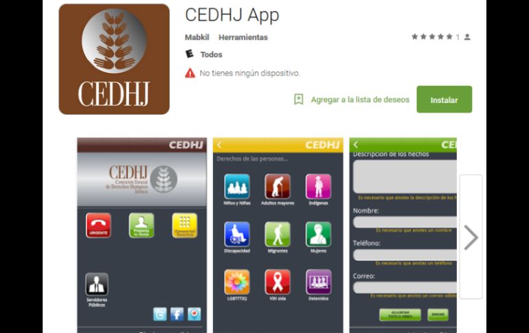 Jalisco | La aplicación permitirá enviar evidencias como fotografías y videos La CEDHJ lanza 'app' para recibir quejas La aplicación permitirá enviar evidencias como fotografías y videos, además de realizar llamadas directas a la guardia Por: EL INFORMADOR 8 de marzo de 2016 - 17:14 hs La aplicación se puede bajar con el nombre 'CEDHJ' en la tienda en línea de cada sistema operativo. ESPECIAL / play.google.com GUADALAJARA, JALISCO (08/MAR/2016).- La Comisión Estatal de Derechos Humanos Jalisco ( CEDHJ) lanzó una aplicación para que, a través del celular, cualquier persona pueda emitir una queja por alguna violación a los derechos humanos. Con esta app, la queja llega de manera directa a la comisión, además de que quien la interpone puede mandar evidencias como fotografías y videos. Esta herramienta gratuita se puede bajar con el nombre "CEDHJ", en la tienda en línea de cada sistema operativo, informó en rueda de prensa uno de los representantes de Comunicación Social de la CEDHJ, Carlos Ortiz Jacal. Con ella se pueden hacer llamadas directas a la guardia de recepción, orientación y seguimiento de quejas, durante las 24 horas del día, todo el año. La app cuenta con diversas opciones como la llamada urgente, la presentación de queja con descripción, orientación sobre los derechos de la sociedad, así como un apartado dedicado a servidores públicos, donde se establece información sobre sus derechos y una invitación para que los promueva y los defienda. La comisión de Jalisco es la primera en el país en lanzar una aplicación de este tipo, la cual se puede descargar e instalar en menos de un minuto. "Destacaríamos el botón más importante, que es donde ofrecemos una llamada urgente, en caso en que en ese momento se estén violentando los derechos humanos de la persona, basta con dos pulsaciones para que la persona se pueda comunicar con la guardia para que reciba asesoría". Una vez emitida la queja, la persona recibirá un correo electrónico con número de folio, para que dentro de los siguientes cinco días pueda acudir a ratificar su queja en las instalaciones de la CEDHJ. Para descargar la aplicación da click aquí EL INFORMADOR / THAMARA VILLASEÑOR Temas CEDHJ Municipios Violación a los Derechos Humanos Aplicaciones Lee También Suben termómetros en Guadalajara y se espanta la lluvia este martes Puerto Vallarta en desgracia; tormenta deja daños y un muerto (FOTOS) Regresa el calor este lunes a Guadalajara; se prevé lluvia Así puedes evitar estafas con las apps de préstamos Recibe las últimas noticias en tu e-mail Todo lo que necesitas saber para comenzar tu día Registrarse implica aceptar los Términos y Condiciones